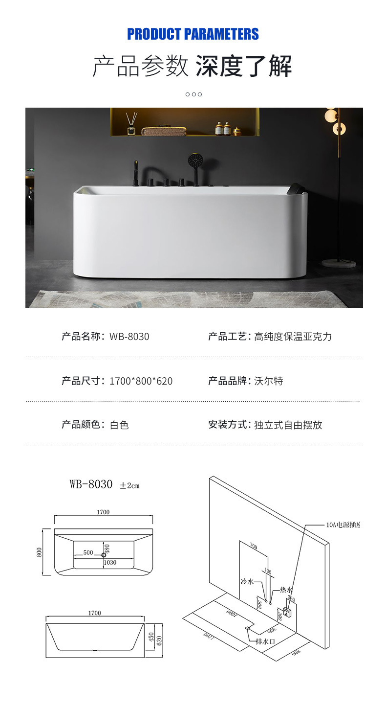 佛山市南海区沃尔特卫浴洁具厂发布的独立式家用智能加热浴盆浴缸 小户型酒店恒温按摩亚克力浴缸批发图集库