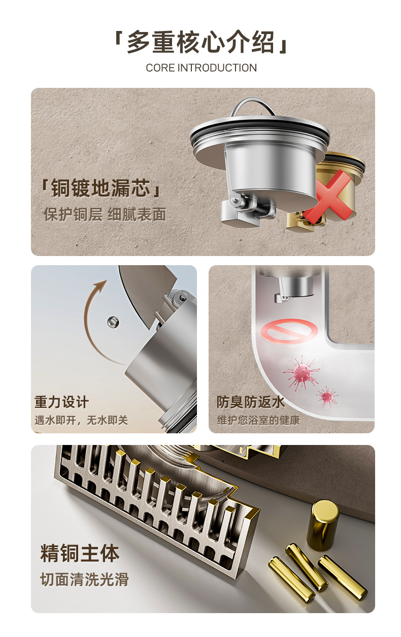 台州市金豪利洁具有限公司发布的全铜移位地漏超薄40管改造用地漏淋浴房防臭防反水大排量洗衣机图集库