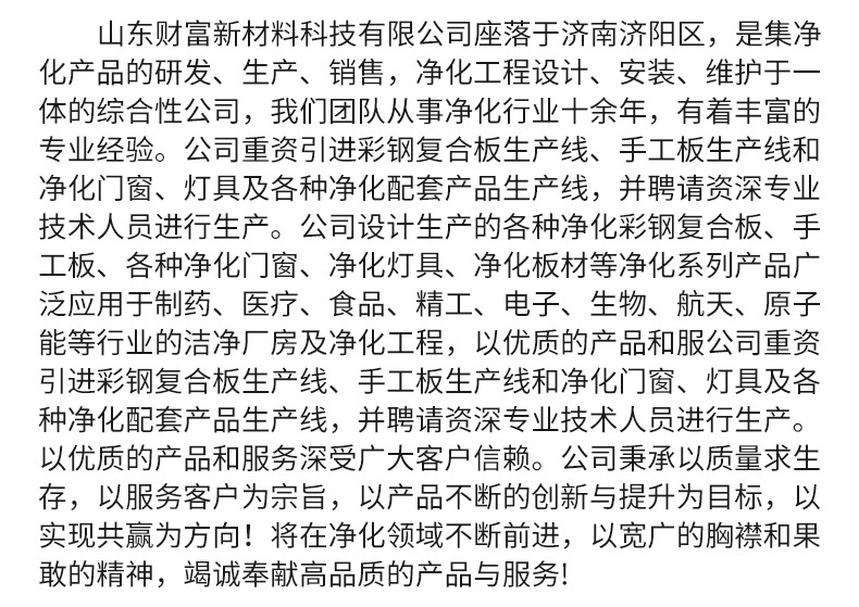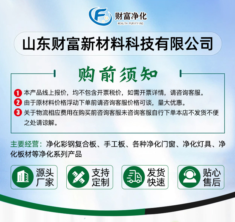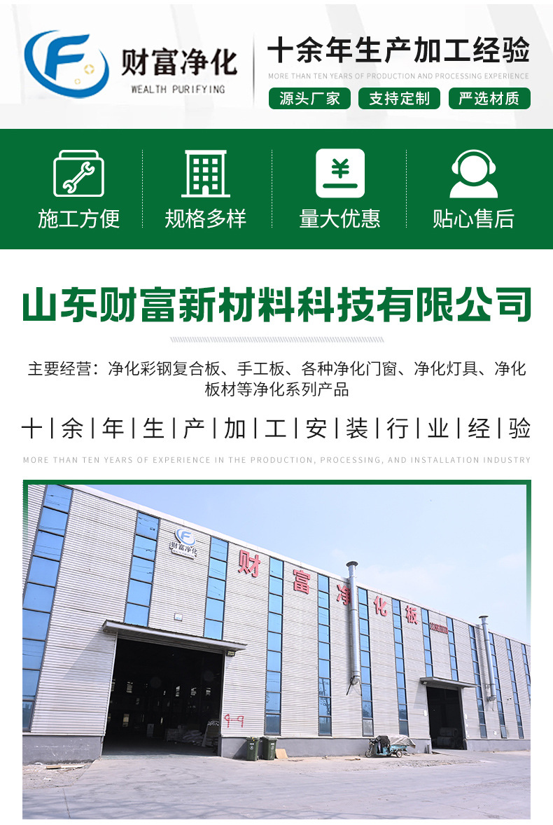 山东财富新材料科技有限公司发布的手工单玻镁岩棉洁净板 净化工程用玻镁岩棉夹芯板玻镁岩棉净化板图集库