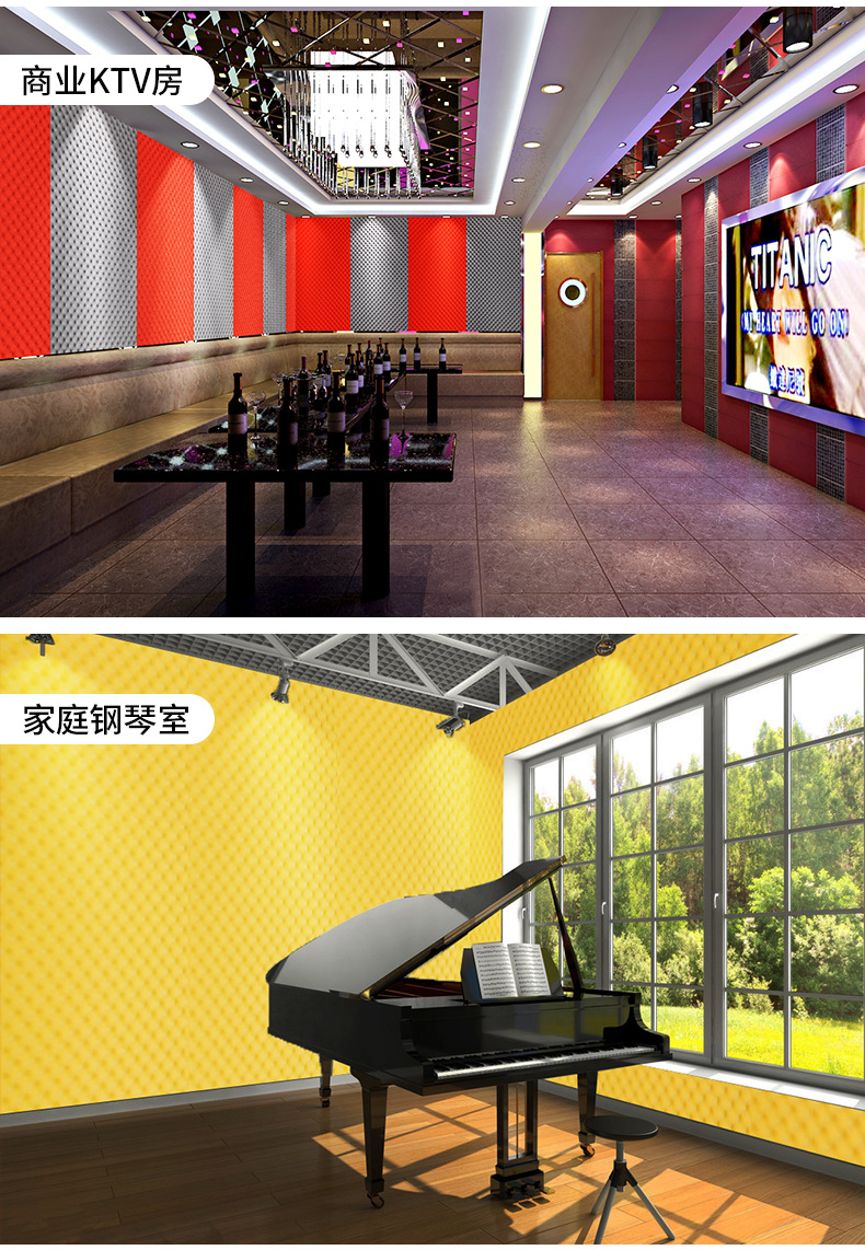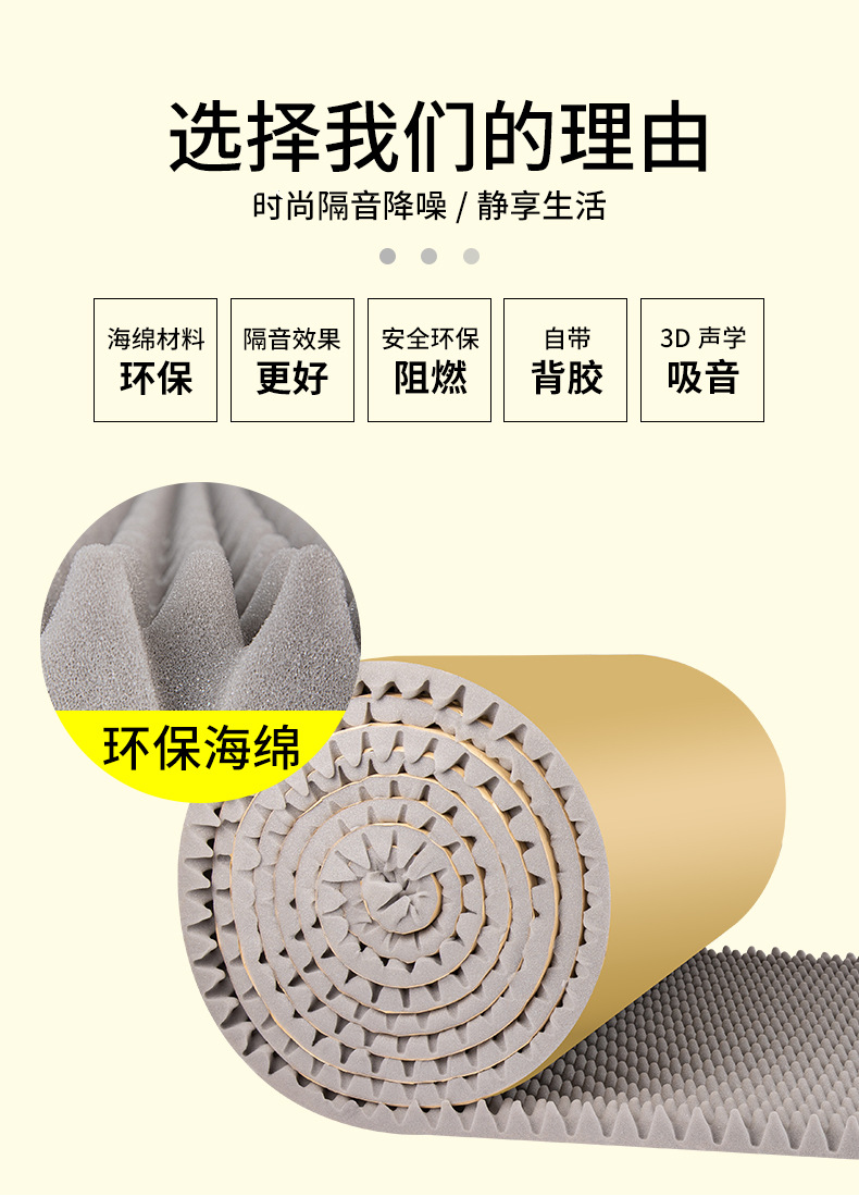 广东莱森节能科技有限公司发布的波浪隔音棉自粘墙体吸音棉家用消音棉填充海绵材料录音棚室内批发图集库