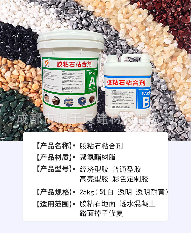 成都市源于晨建材有限公司发布的粘接性强透水胶粘石专用胶水厂家聚氨酯水洗石透明耐黄粘合剂AB胶图集库