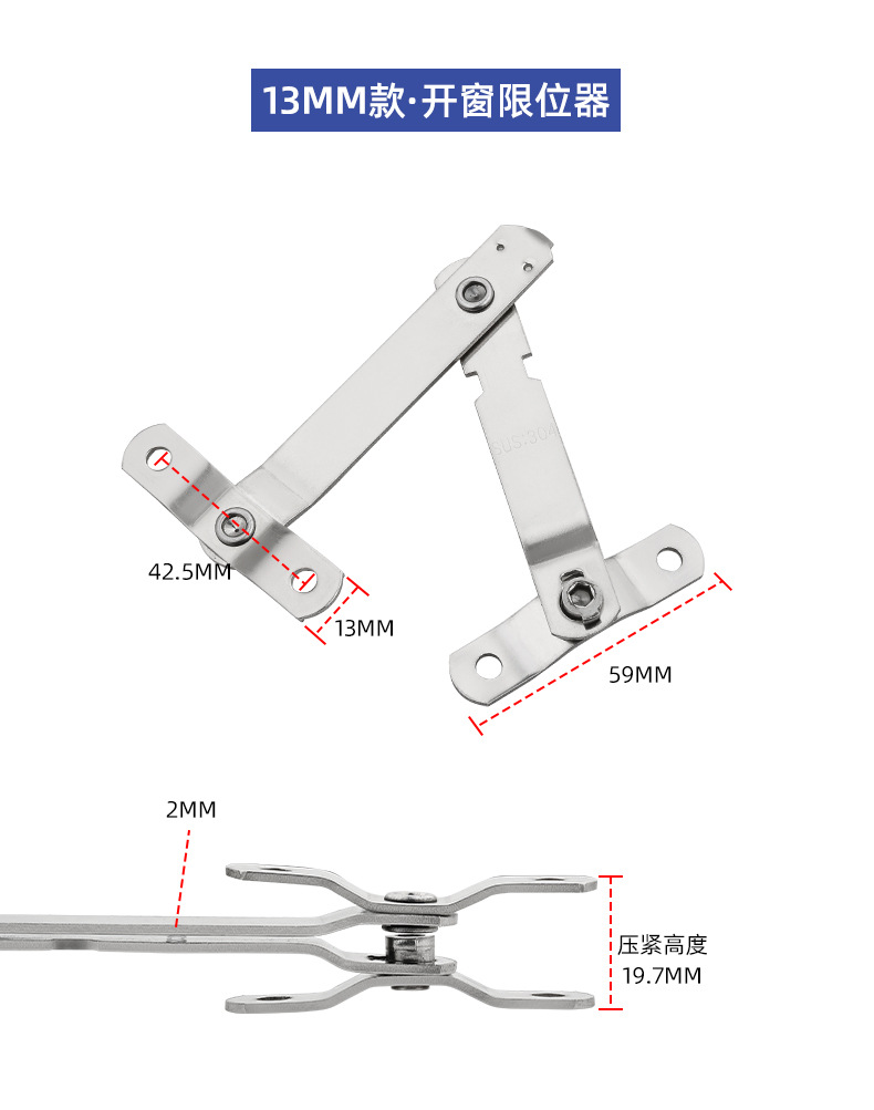 广州卡欧斯五金有限公司发布的铝合金塑钢上悬窗户防火平开内外窗通用限位器学校酒店安全限位杆图集库