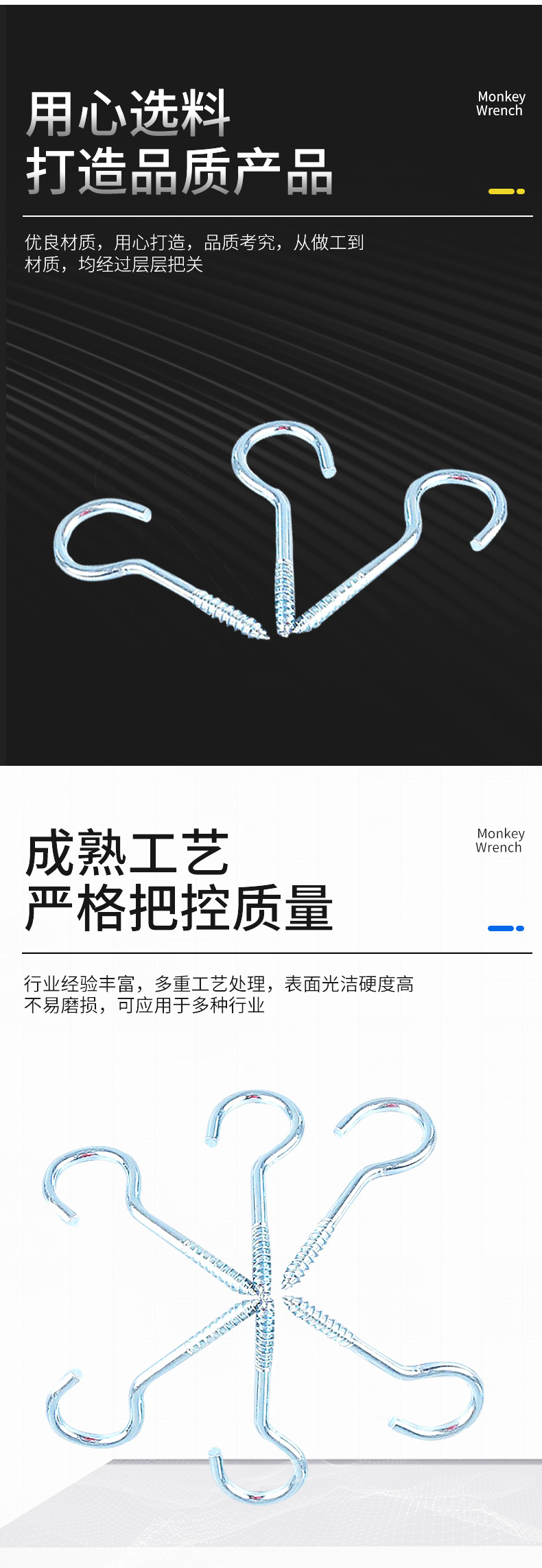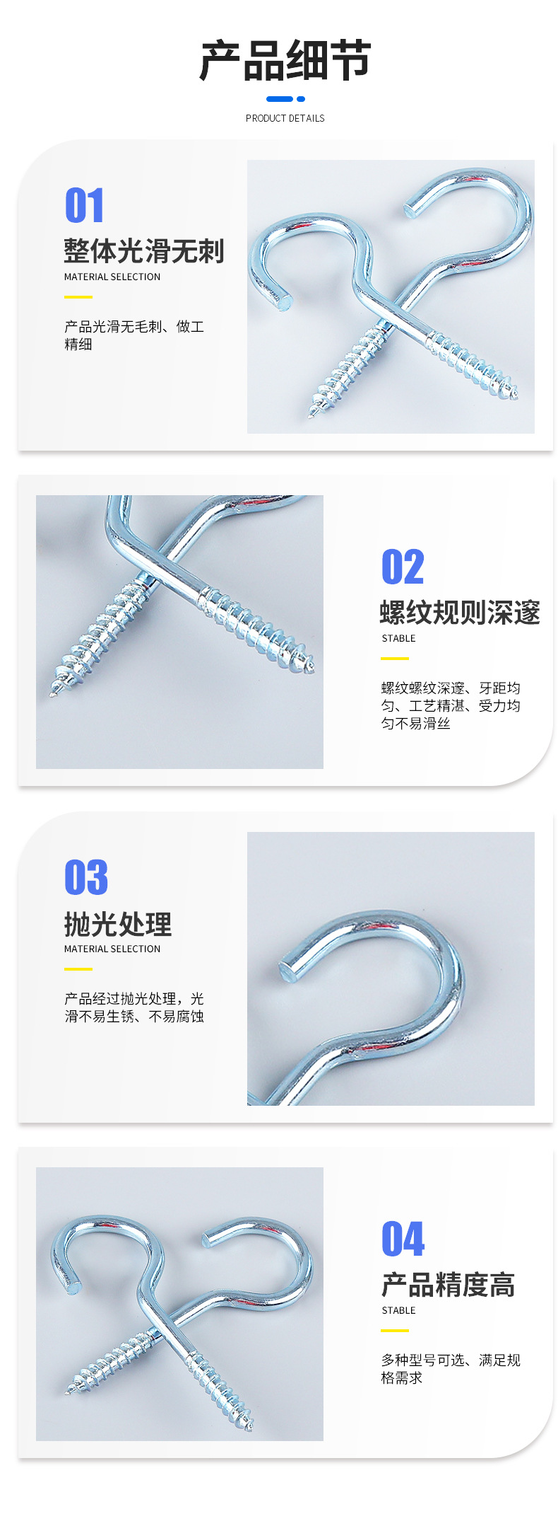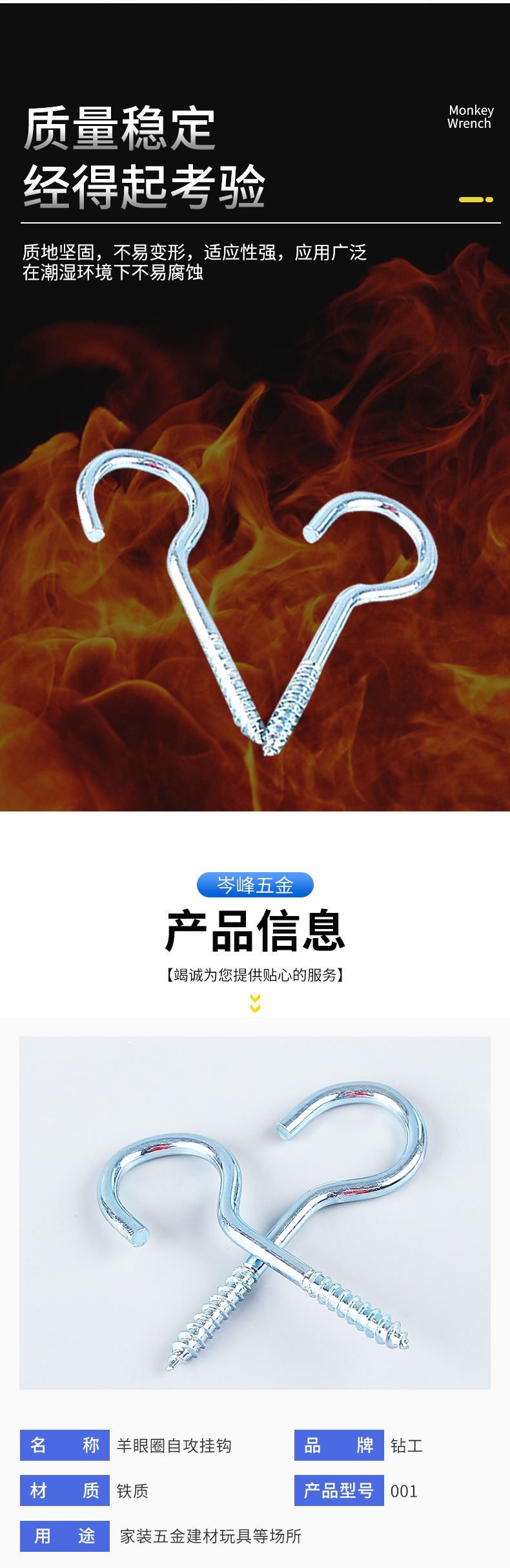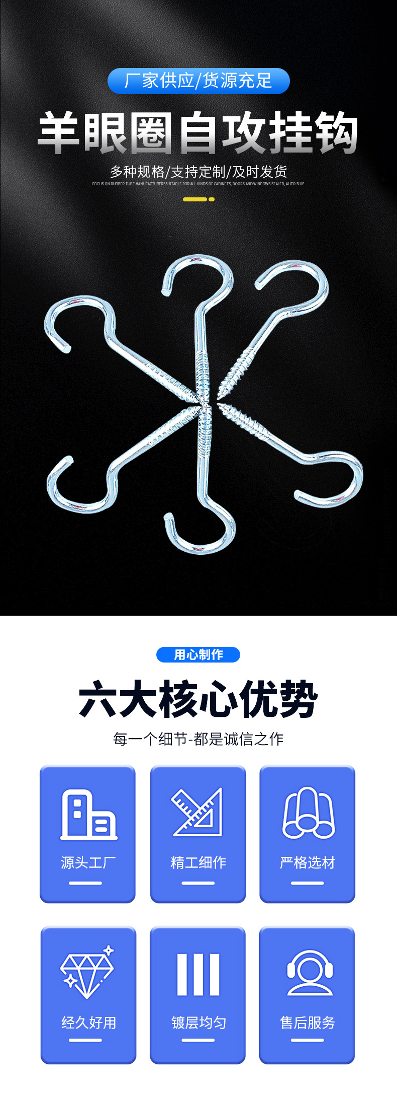 温州岑峰五金有限公司发布的厂家现货镀锌羊眼钩 多规格问号钩螺丝钩 吊钩吊花篮灯钩帽子挂钩图集库