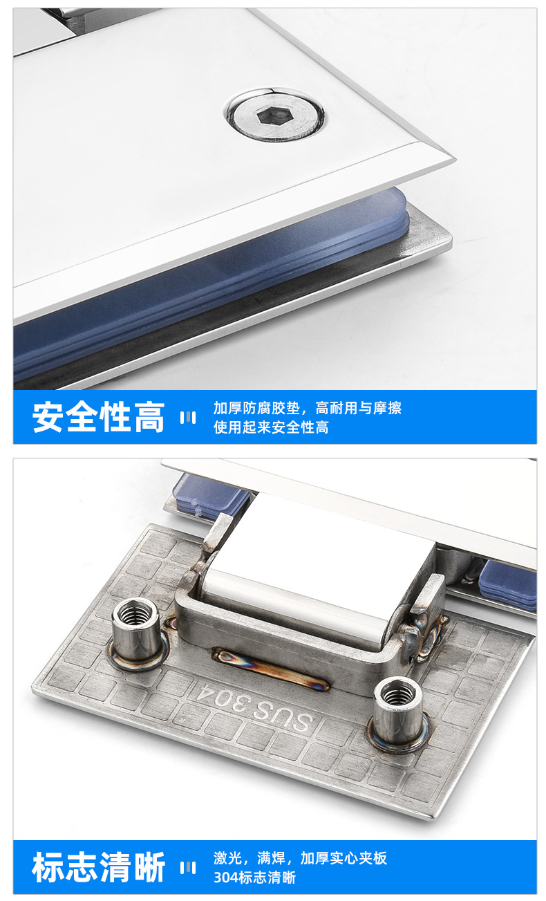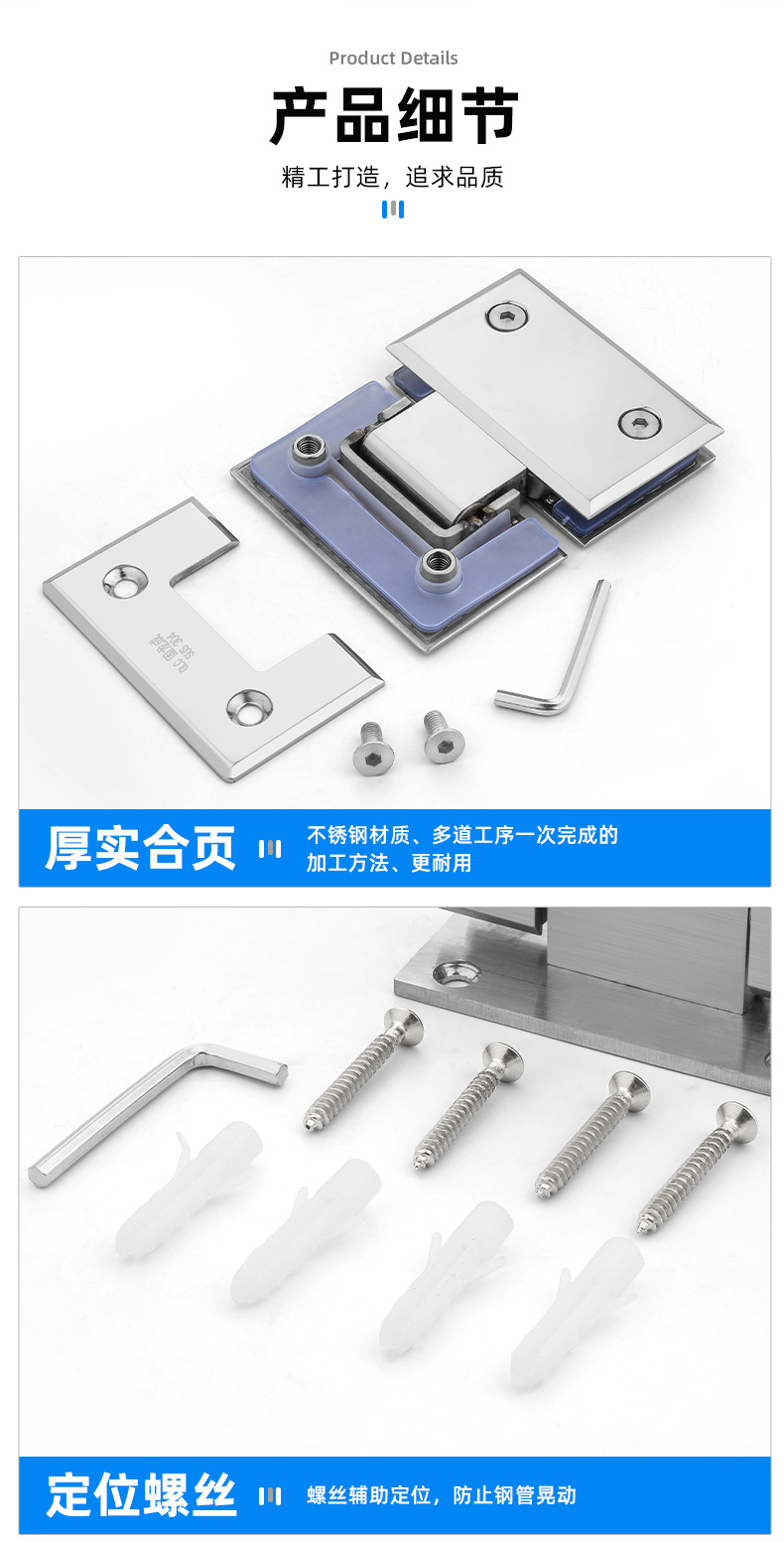 广州乐亿嘉五金有限公司发布的304不锈钢玻璃合页180度双向铰链浴室夹淋浴房配件淋浴房 实心门夹图集库