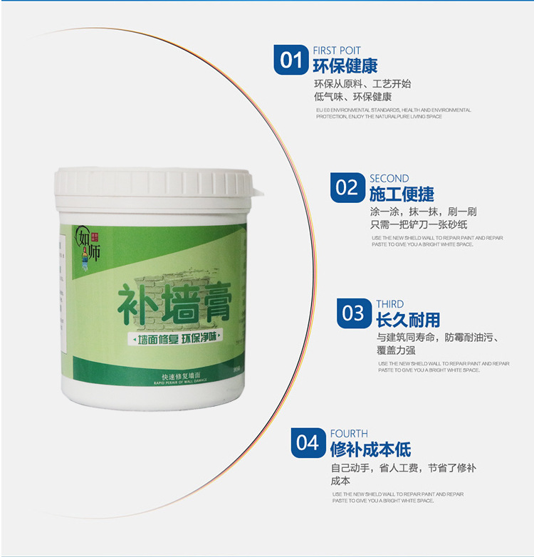 营口林夕家居有限公司发布的如师墙面修补白色补墙洞裂缝钉眼修复内墙防潮腻子膏家用补墙膏图集库