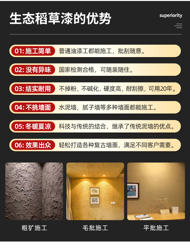 临沂市兰山区鼎顺装饰材料销售部发布的稻草漆工厂批发民宿展厅等室内外墙面通用夯土复古肌理灰泥稻草漆图集库