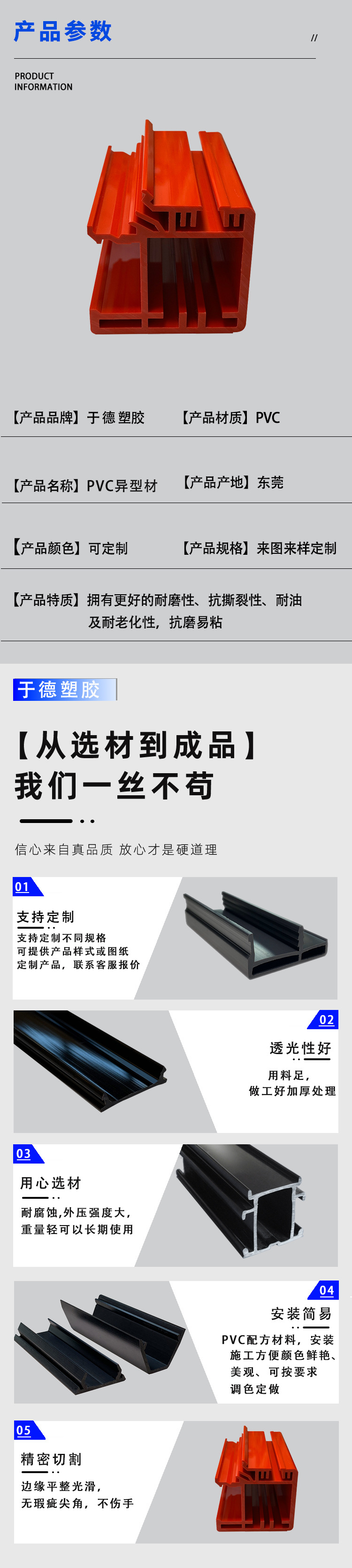 东莞市于德塑胶有限公司发布的厂家定制PVC挤出异型材塑料胶条门窗塑钢型材开模定制AB S塑胶边框图集库