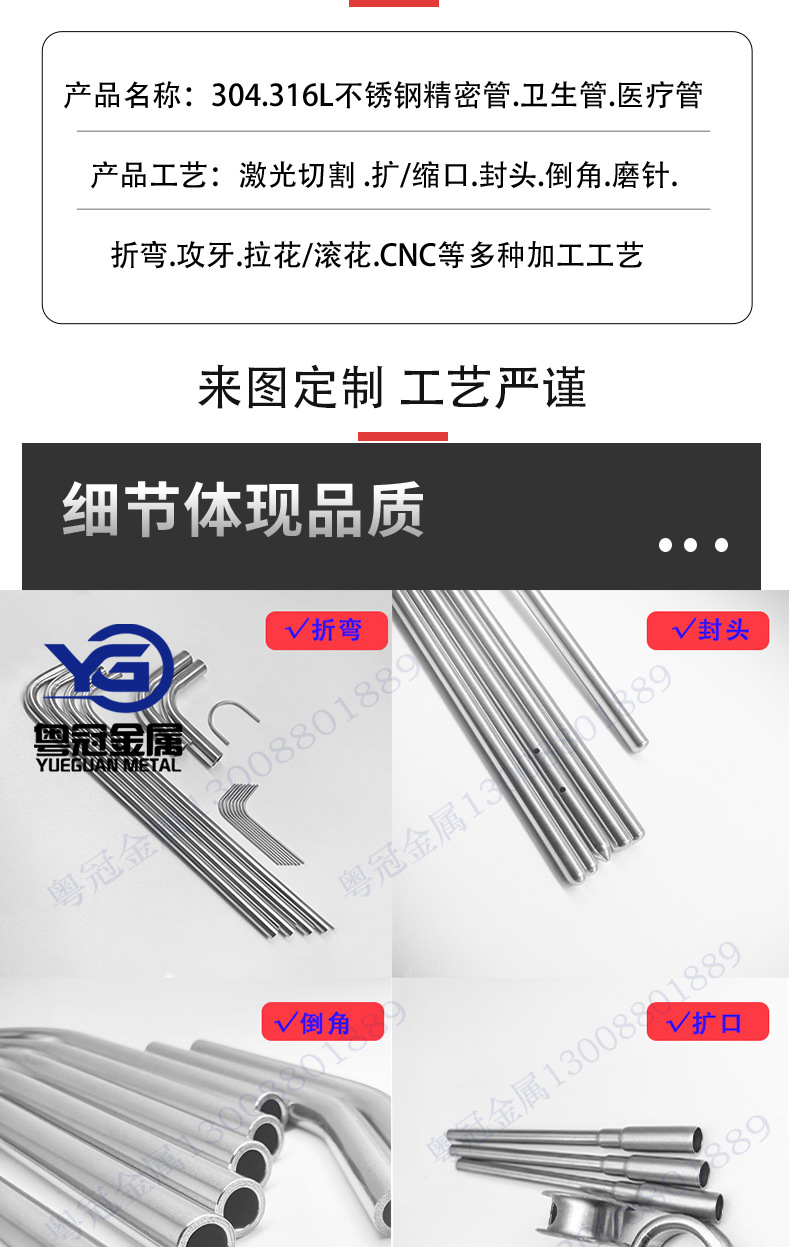 深圳粤冠金属制品有限公司发布的316L304不锈钢毛细管医用级光亮管扩口定 制加工图集库