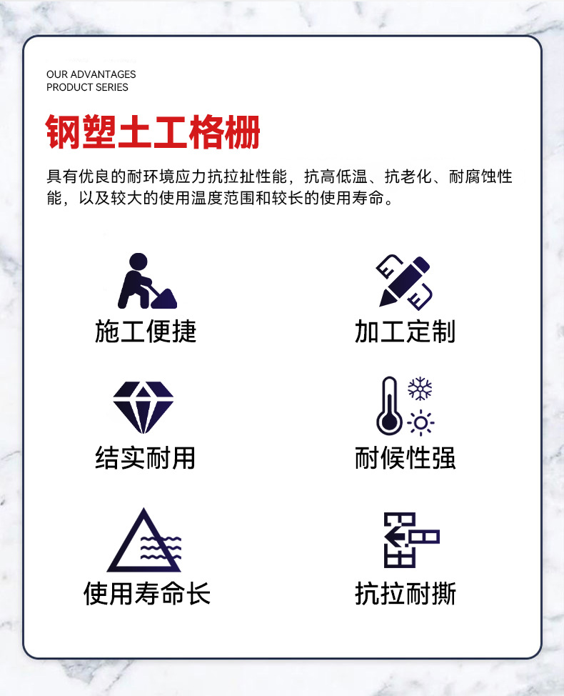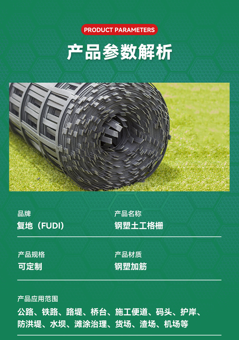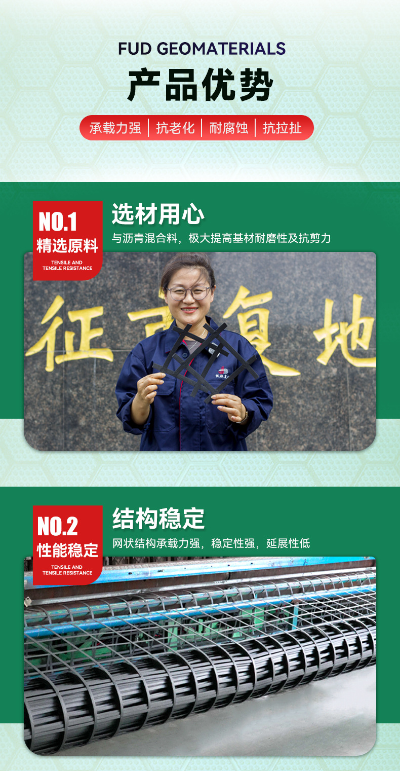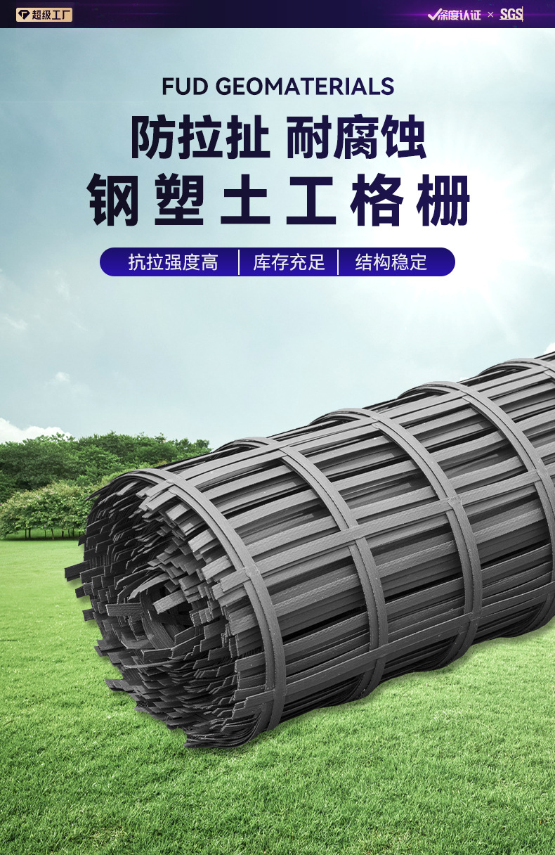 仪征市复地土工材料有限公司发布的加工定制双向拉伸网状复合栅路基加筋地基高强焊接钢塑土工格栅图集库