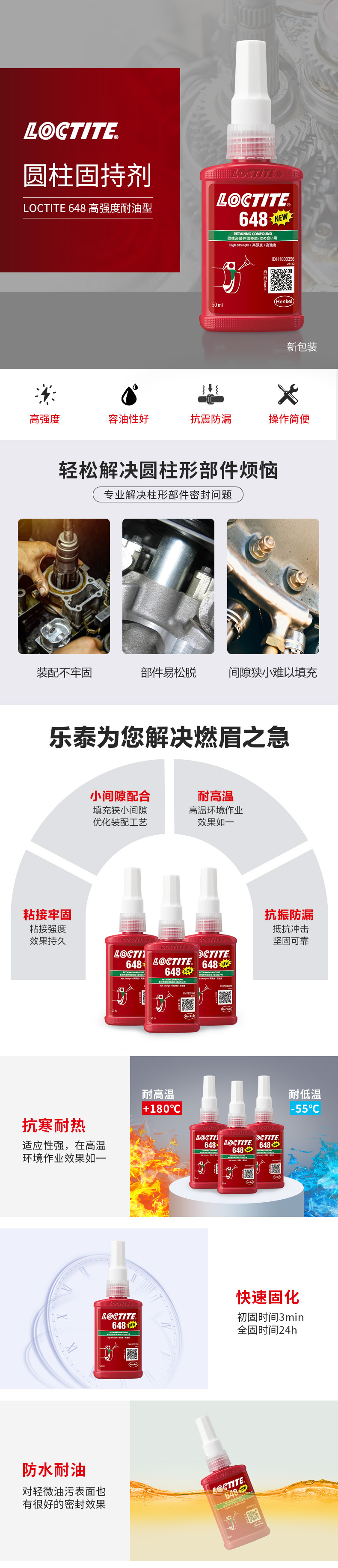 安徽曼伦自动化设备有限公司发布的汉高LOCTITE乐泰648圆柱固持胶高强度惰性金属耐油耐高 温轴承胶水图集库