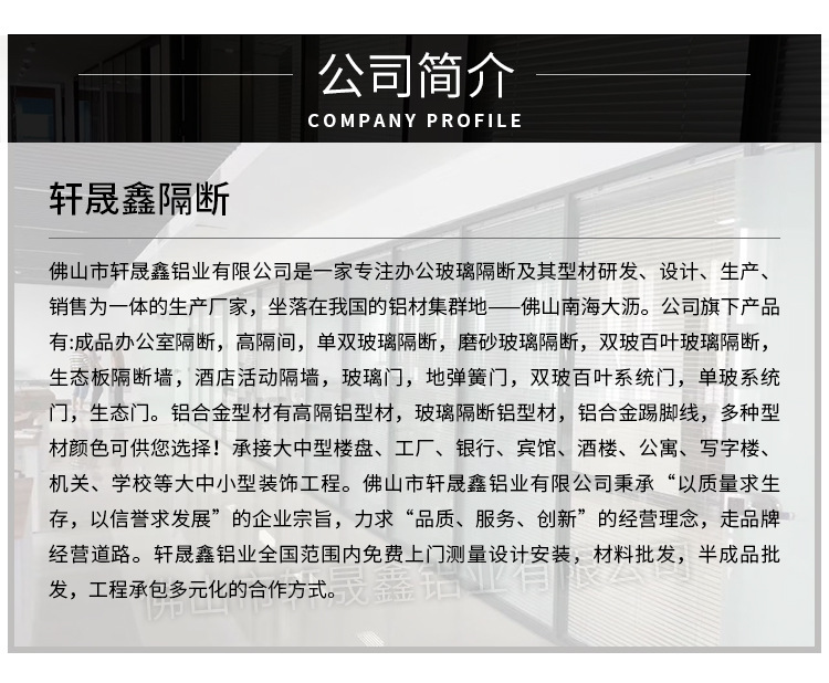 佛山市轩晟鑫铝业有限公司发布的办公室玻璃隔断墙钢化玻璃铝合金双层百叶磨砂高隔断隔音办公装修图集库
