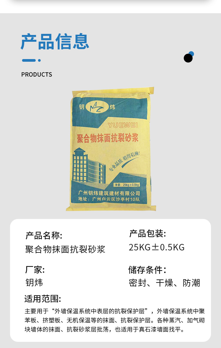 广州钥炜建筑建材有限公司发布的广东地区供应聚合物抹面抗裂砂浆 外墙保温聚合物抹面砂浆图集库