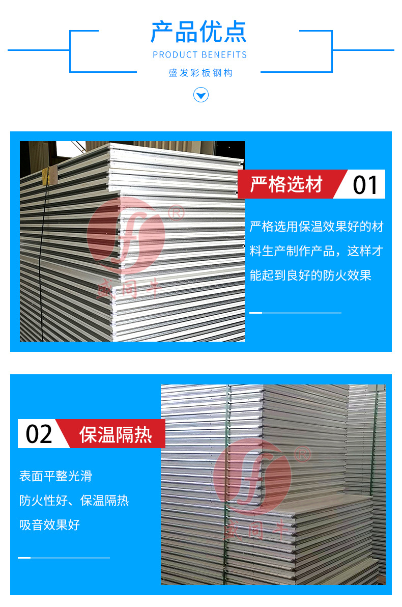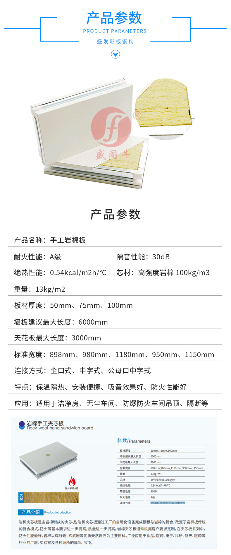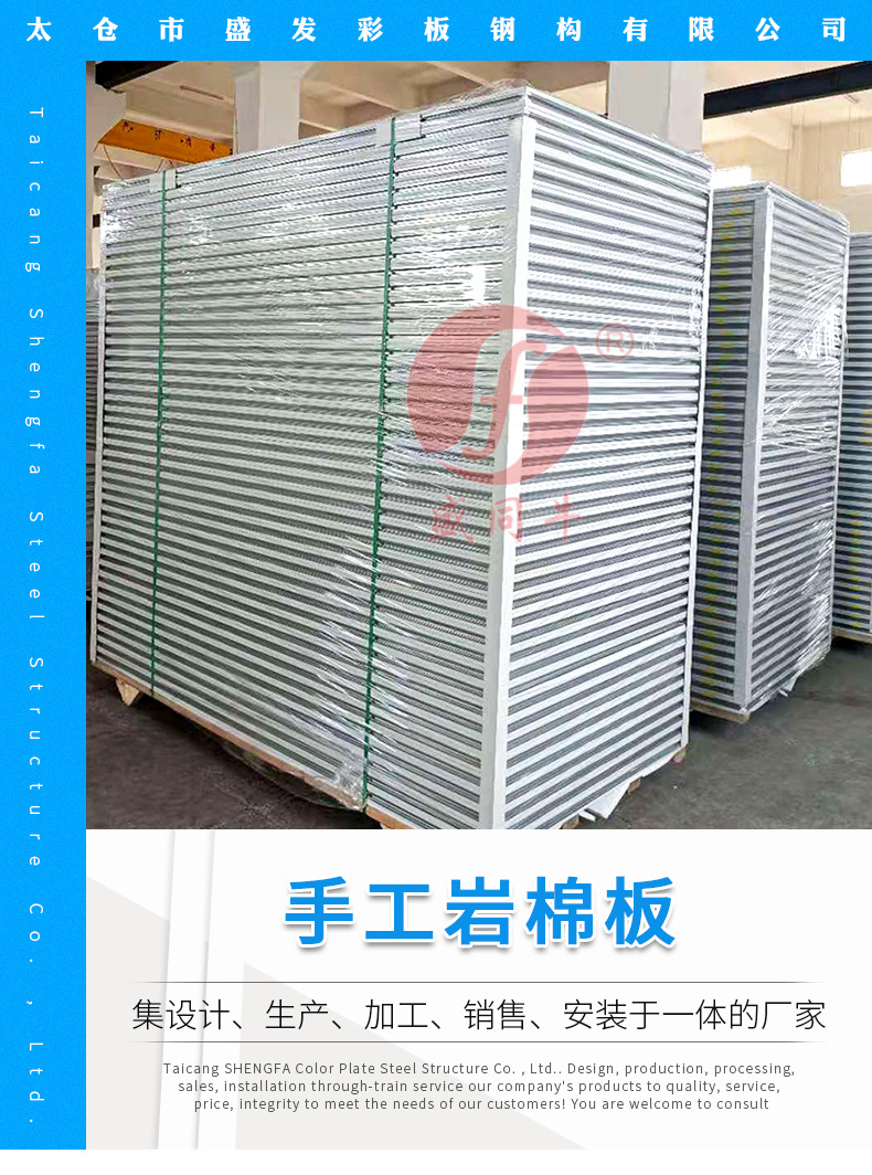 太仓市盛发彩板钢构有限公司发布的手工岩棉板彩钢板隔墙50mm复合保温夹芯板洁净防火食品车间净化板图集库