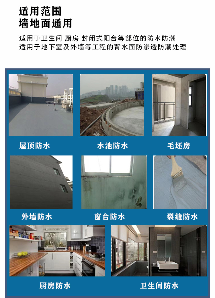 四川利和昇新材料科技有限公司发布的聚氨酯厨卫墙面阳台水池防水防漏防霉柔性刚性通用型防水涂料图集库