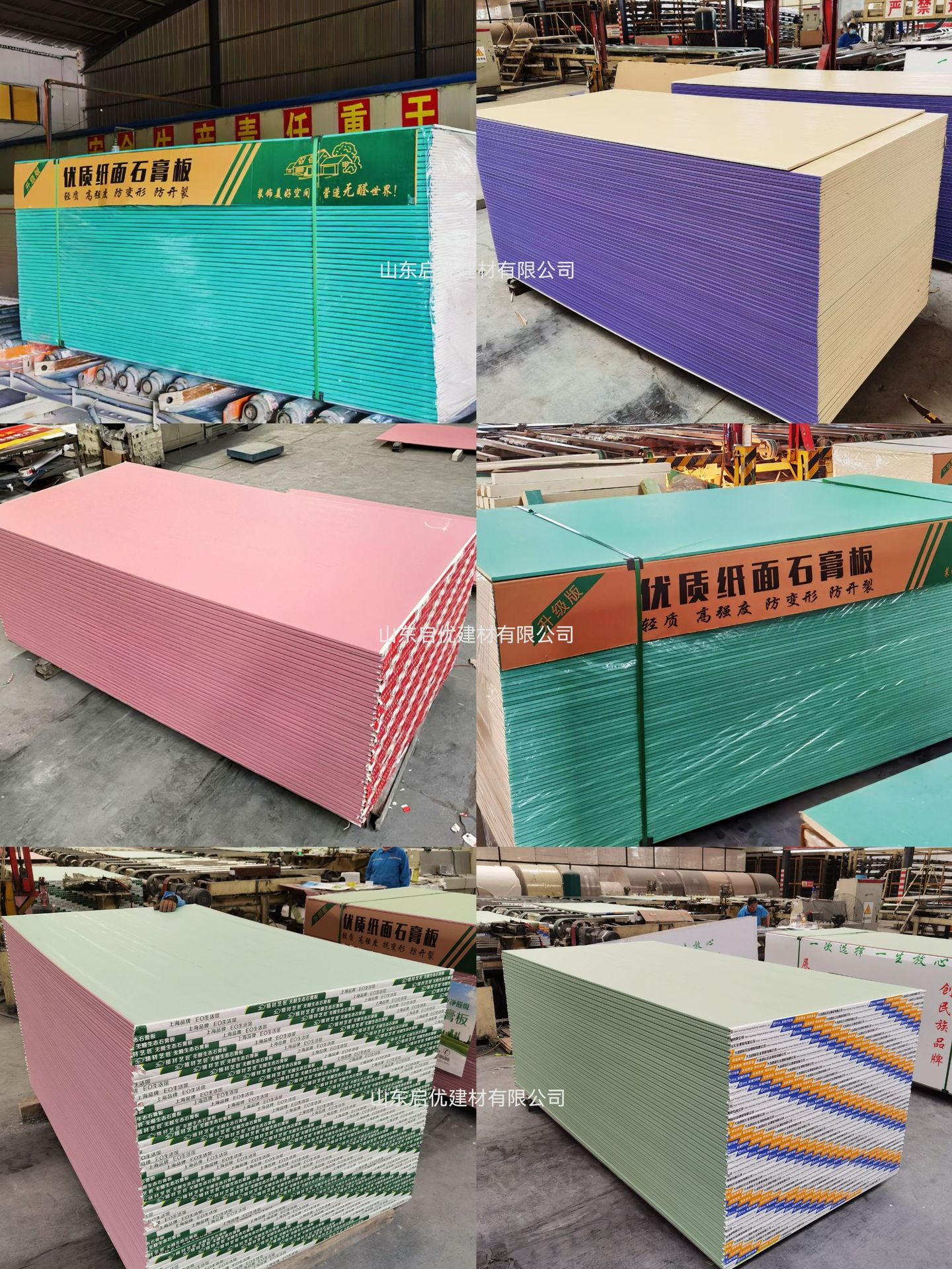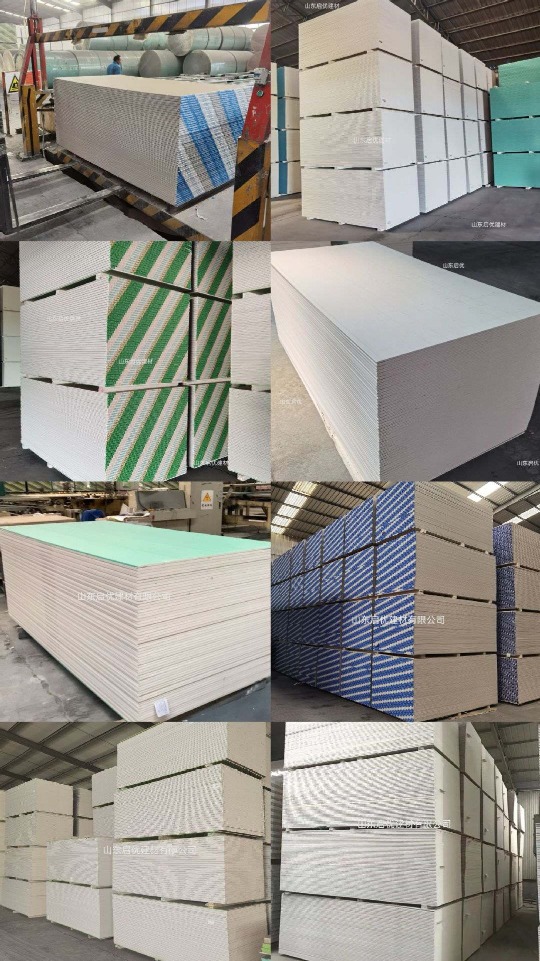 山东启优建材有限公司发布的工厂直销高质量吊顶纸面石膏板批发 防潮石膏板加筋加网9.5mm12mm图集库