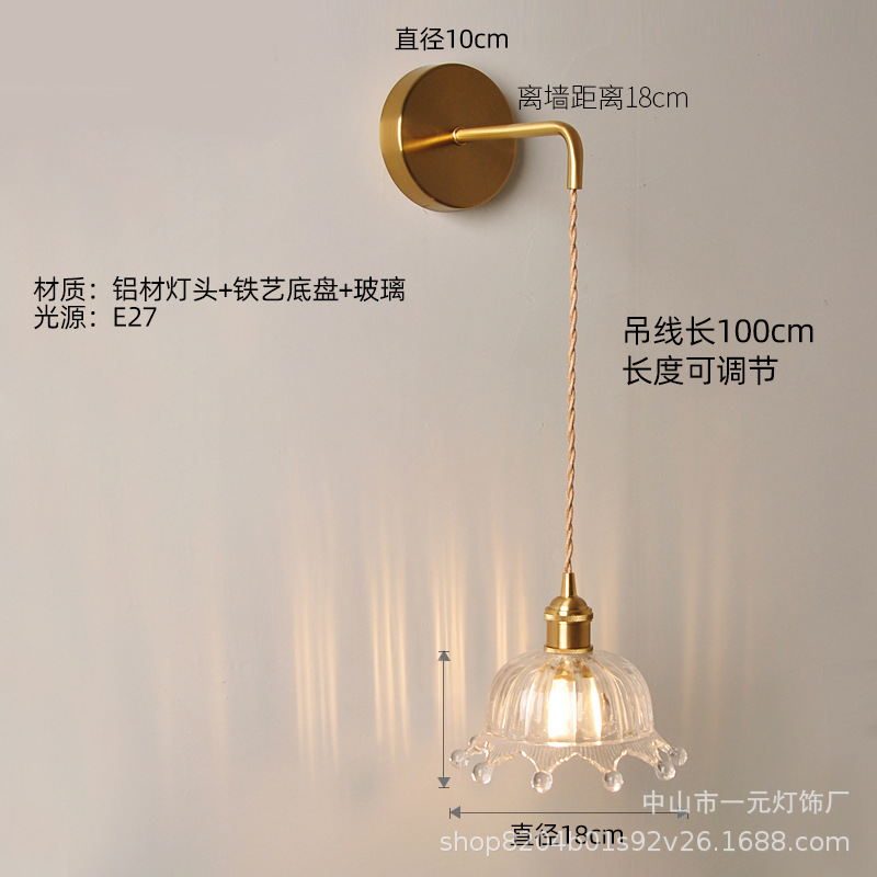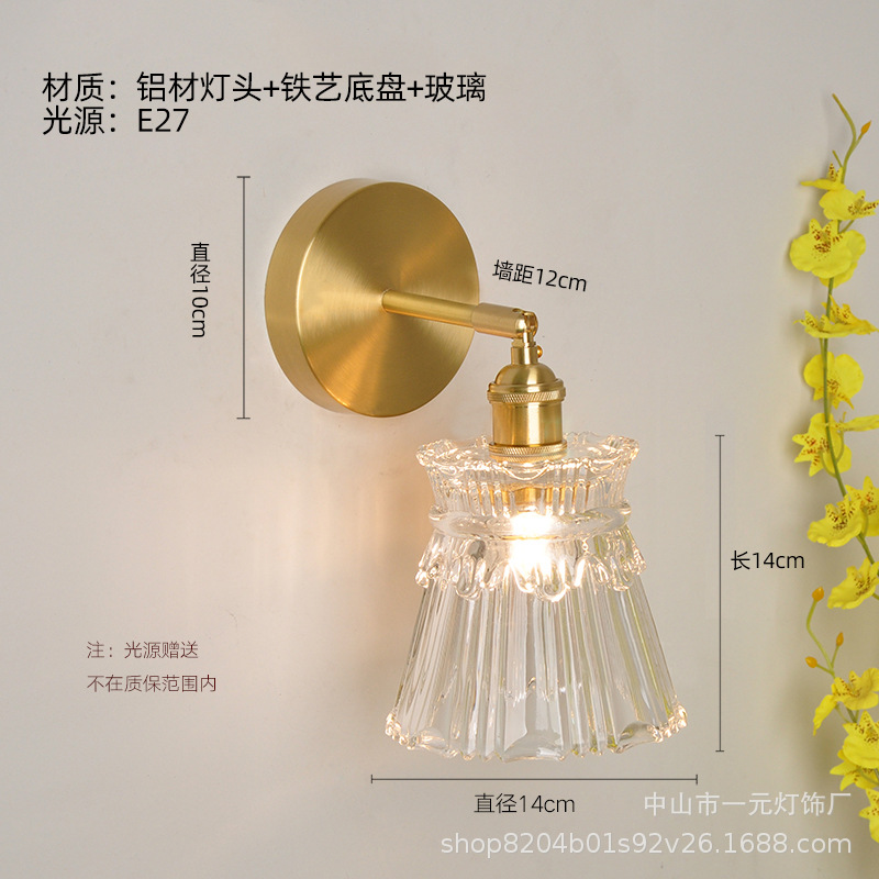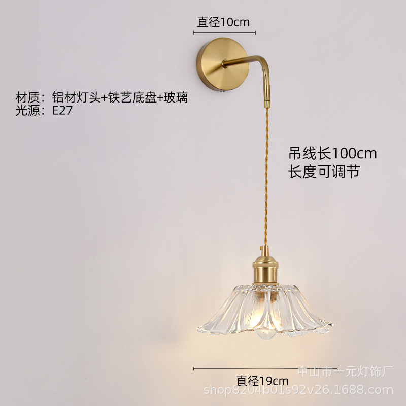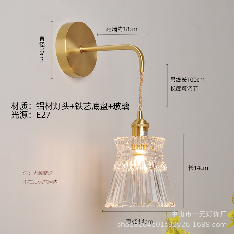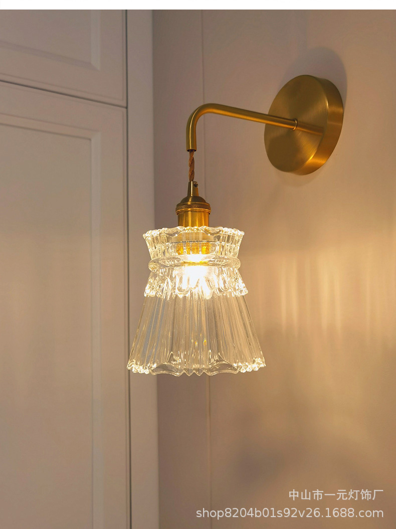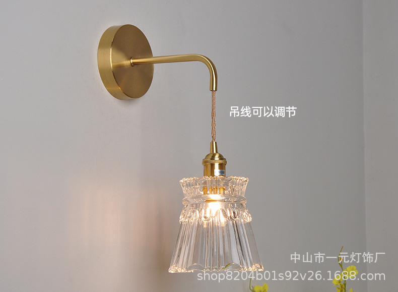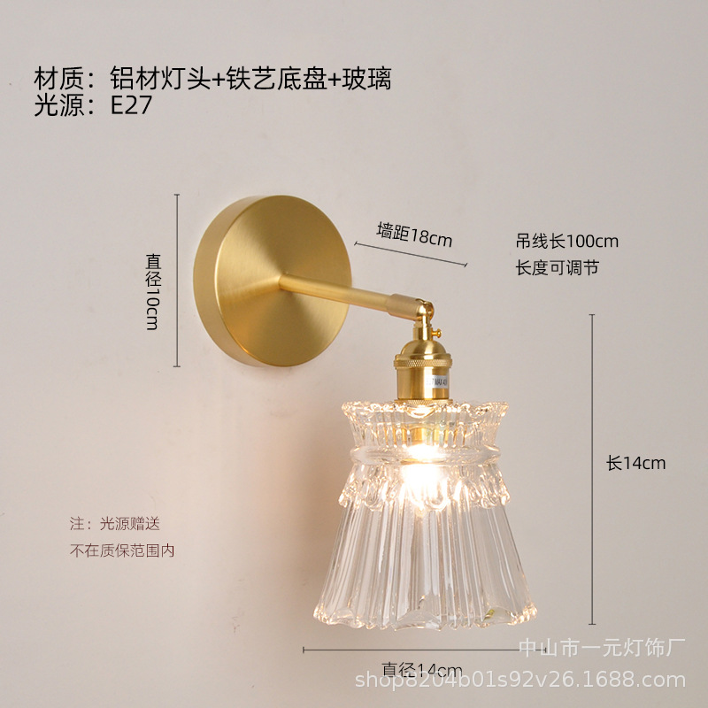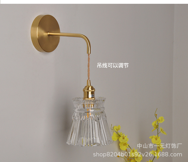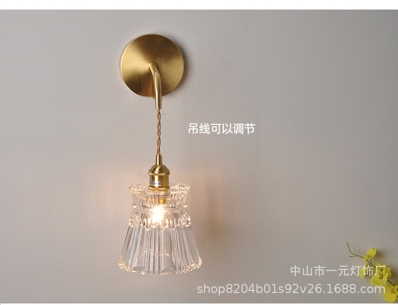 中山市一元灯饰厂发布的日式复古铜玻璃壁灯后现代简约北欧轻奢卧室床头美式客厅背 景墙灯图集库