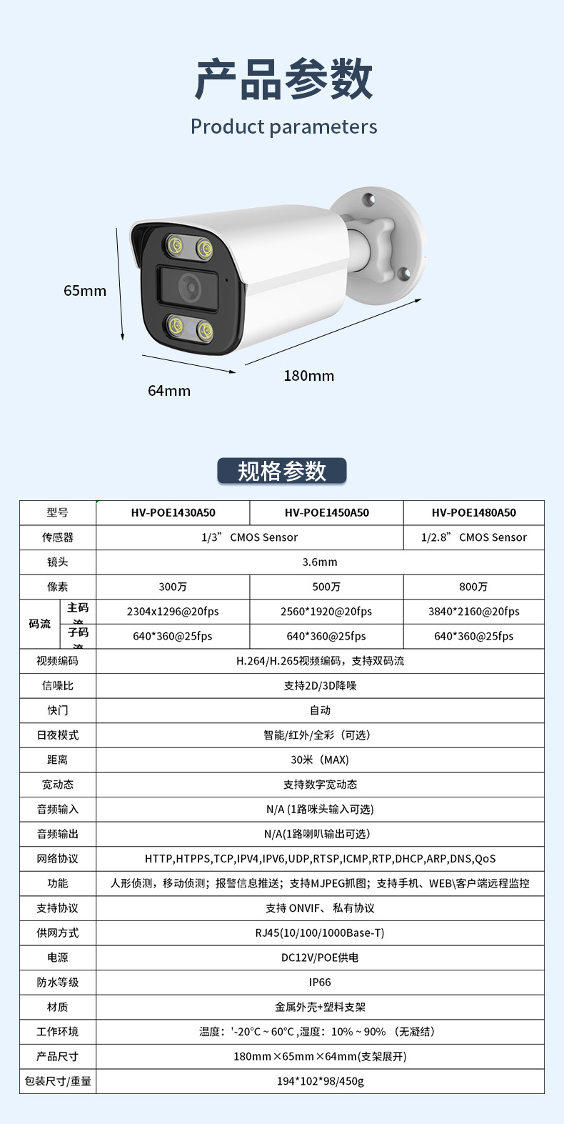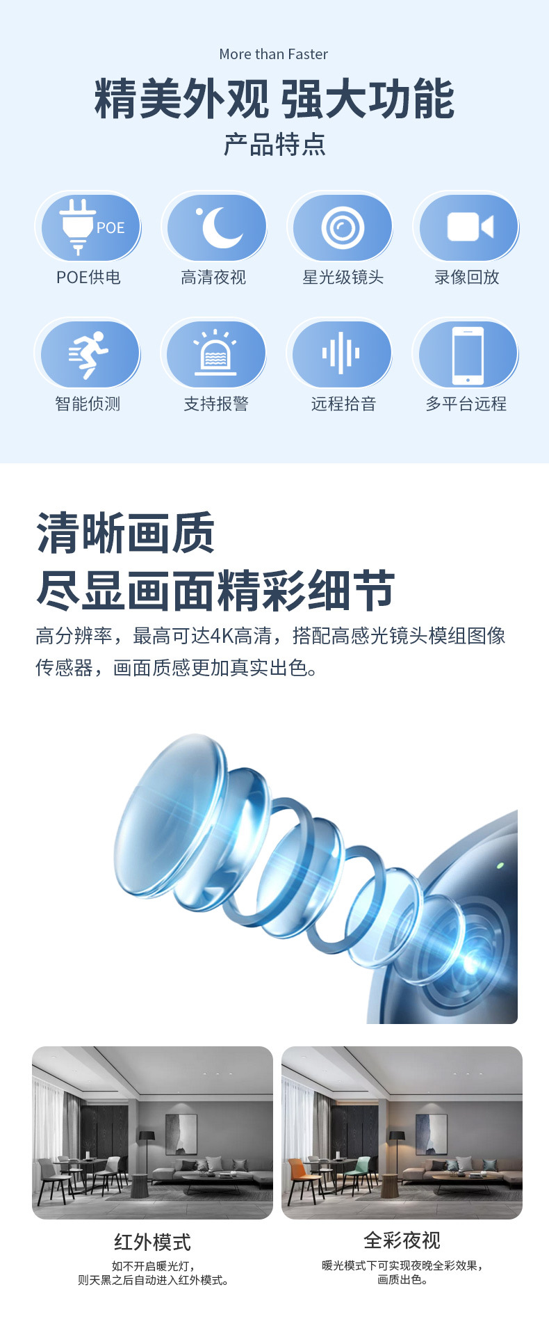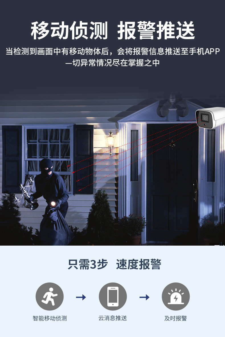 深圳市三创鑫科技有限公司发布的批发室外防雨全彩夜视高清监控摄像机报警推送POE供电枪机摄像头图集库