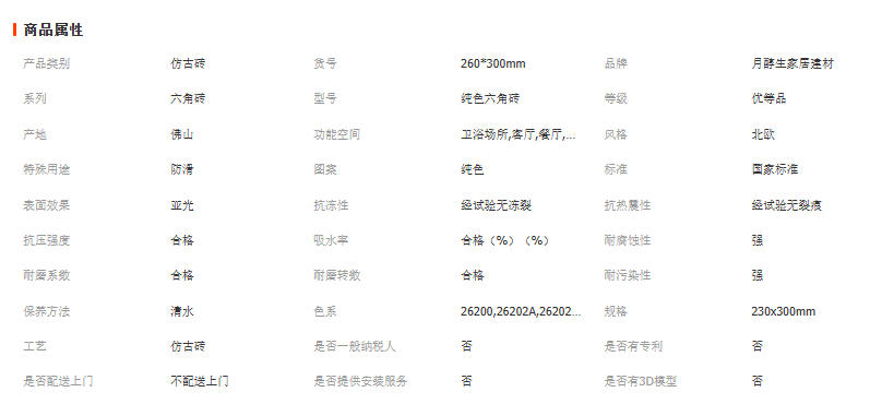 邯郸市桦东园林古建筑工程有限公司发布的260x300六角砖北欧防滑地板砖厨房卫生间阳台背景墙六边形瓷砖图集库