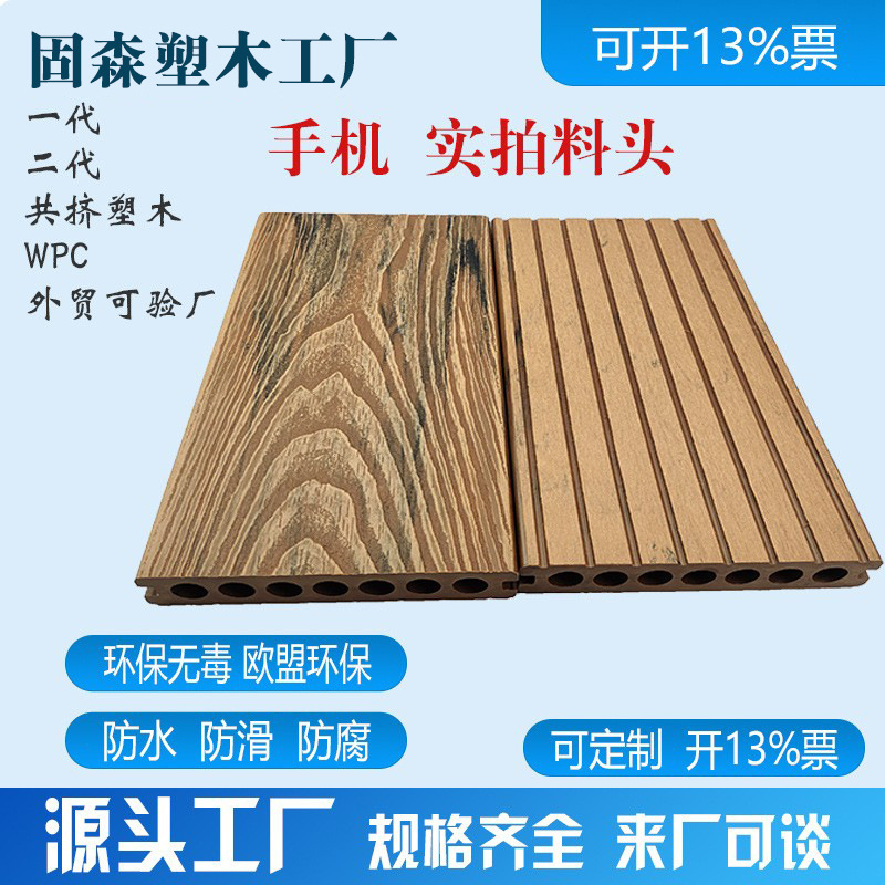 芜湖固森新材料科技有限公司发布的WPC混色流母木塑地板实心塑木庭院防腐一代共挤室外地面环保防腐图集库