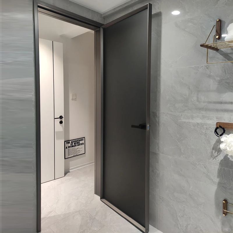佛山市南海区罗村澳杰斯门窗厂发布的灰油砂极窄卫生间门超白长虹玻璃浴室厕所洗手间铝合金油砂玻璃门图集库