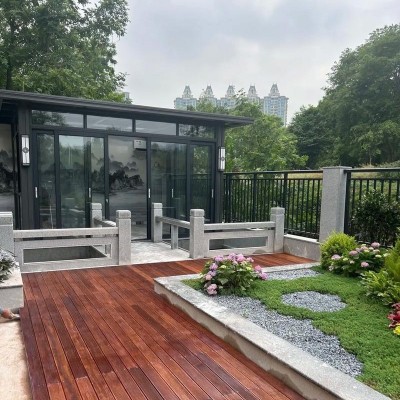成都合盛行木材有限公司发布的印尼菠萝格防腐木户外地板防腐木方木条护栏凉亭公园阳台实木地板图集库