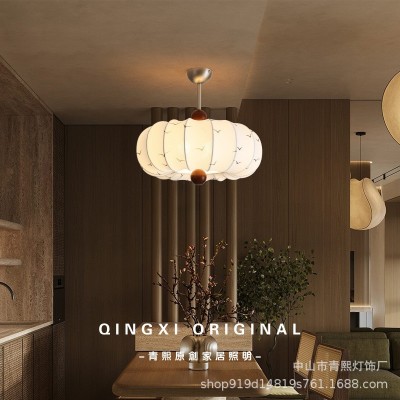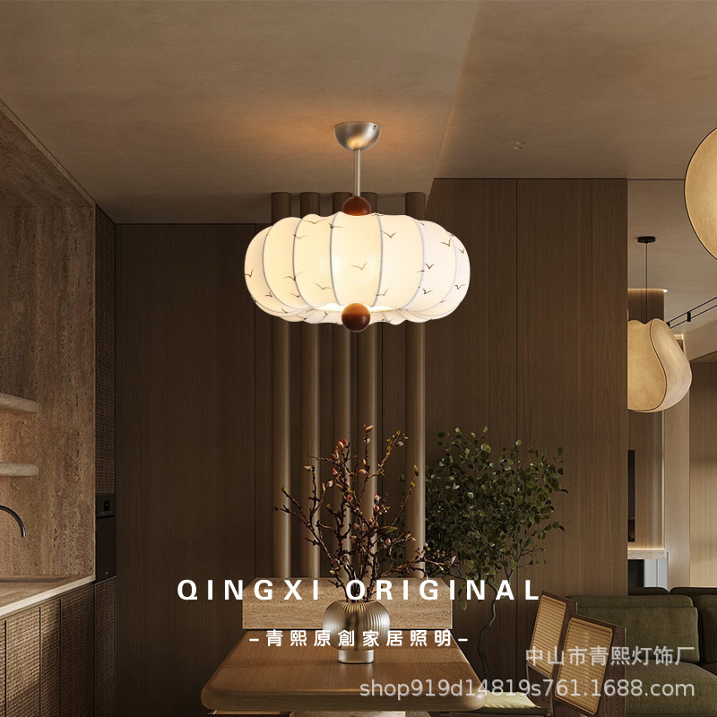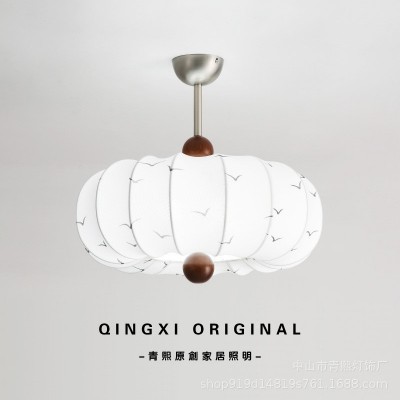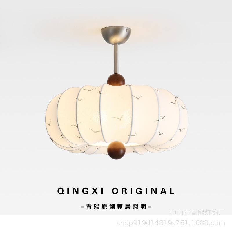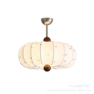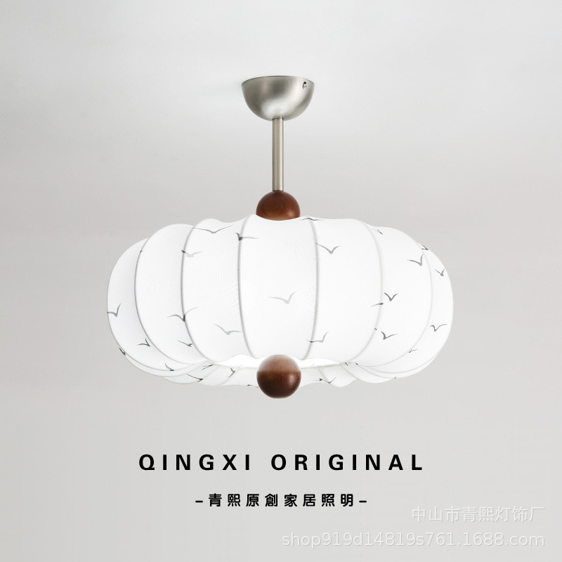 中山市青熙灯饰厂发布的复古法式风布艺卧室吊灯栗子实木花纹餐厅吊灯浪漫创意房间主吊灯图集库