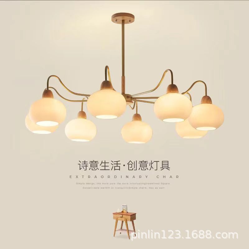 中山市品霖照明科技有限公司发布的中古风柿子大厅吊灯卧室书房客厅主灯北欧大气木艺法式简约吊灯图集库