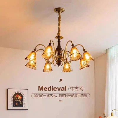 中山市品霖照明科技有限公司发布的法式中古风客厅主灯餐厅吊灯设计师美式复古大厅灯多头玻璃主卧灯图集库