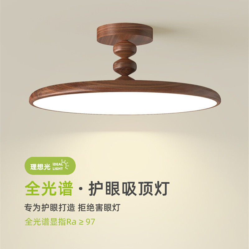中山市品霖照明科技有限公司发布的主卧室灯复古胡桃木色飞碟吸顶灯中古餐厅灯侘寂风书房灯中山灯具图集库
