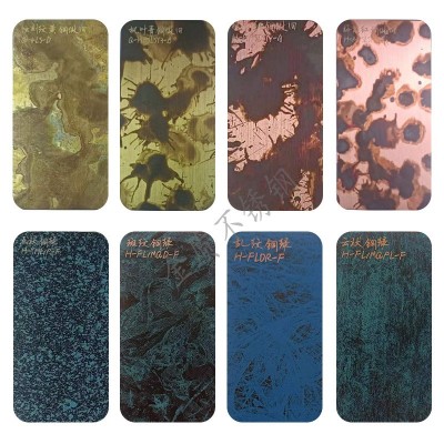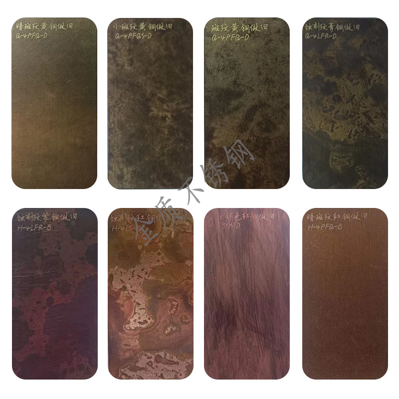 发布的镀铜做旧不锈钢板 青红黄古铜做旧锈斑斑点发黑高端装饰电梯门图集库