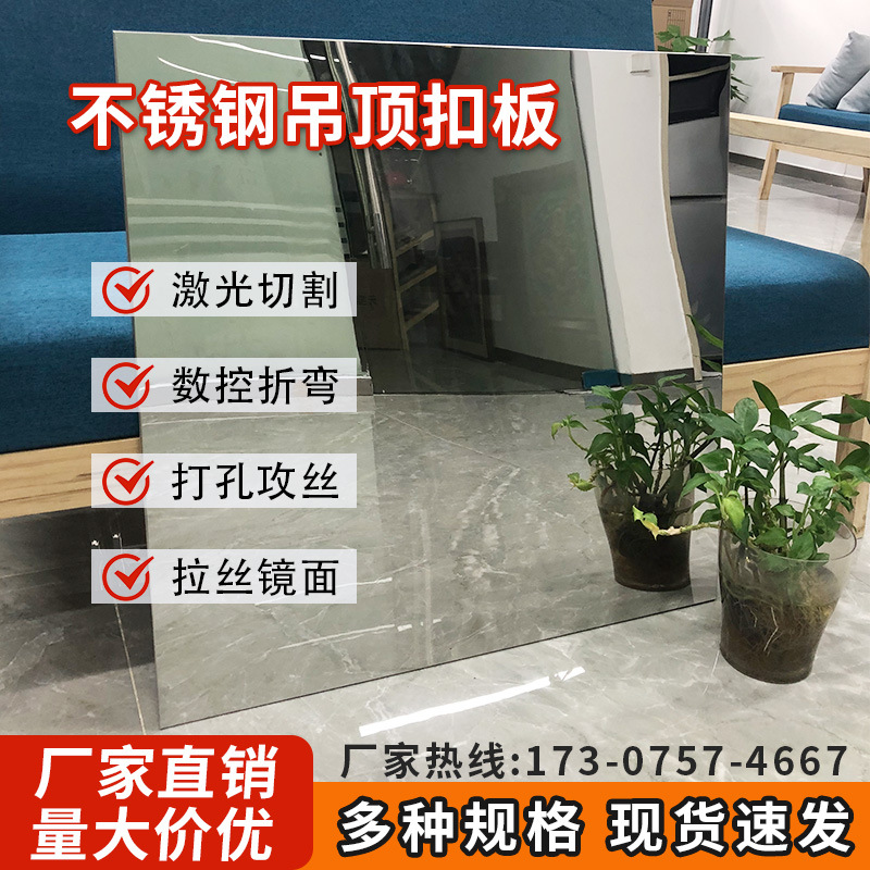 广州市璟鸣金属制品有限公司发布的食品厂不锈钢镜面扣板吊顶600*600扣板拉丝304厨房酒店酒吧天花板图集库