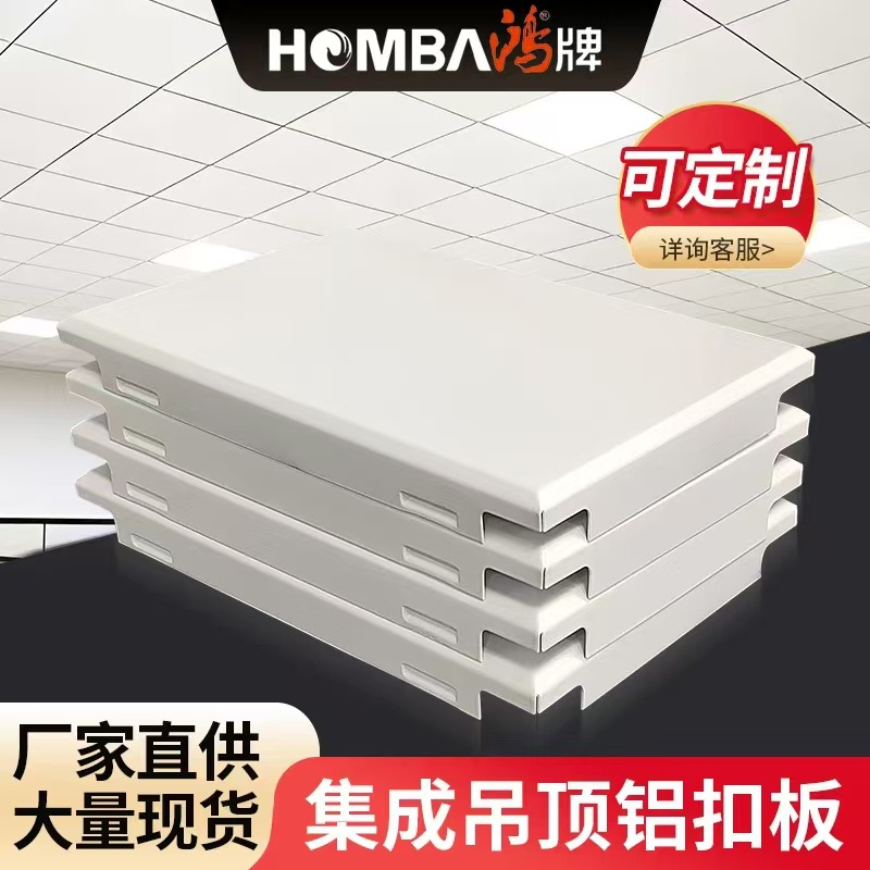 广州市鸿牌建材科技有限公司发布的工程铝扣板吊顶哑光白600*600扣板铝天花密拼冲孔防火阻燃图集库