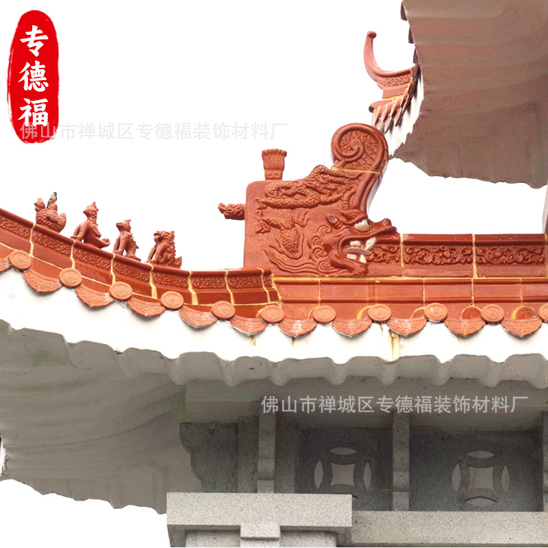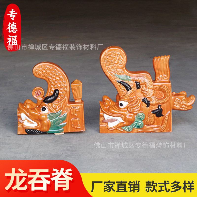 寿光市奥瑞防水材料有限公司发布的佛山陶瓷 古建筑屋顶牌坊琉璃瓦配件 京式龙吞脊屋面材料鳌鱼吞脊图集库