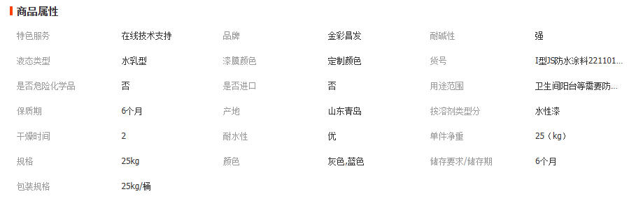 青岛金彩强化涂料厂发布的JS卫生间防水涂料屋顶外墙防水补漏材料厨卫隧道水池防水涂料图集库