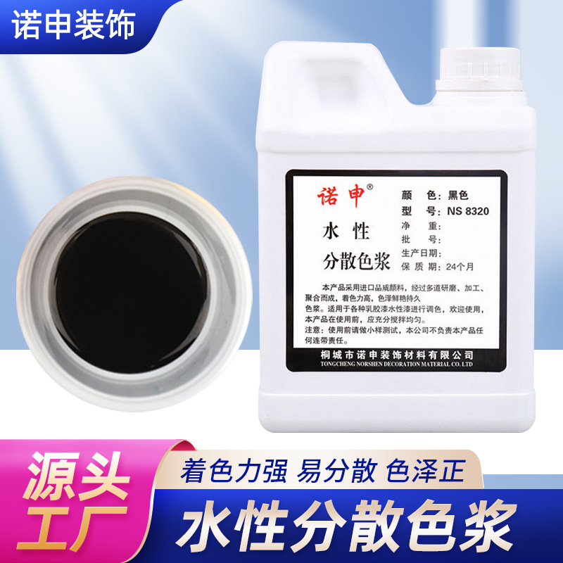 桐城市诺申装饰材料有限公司发布的黑色1KG水性色浆 高浓度内墙防水涂料调色颜料乳胶漆油 墨色精图集库