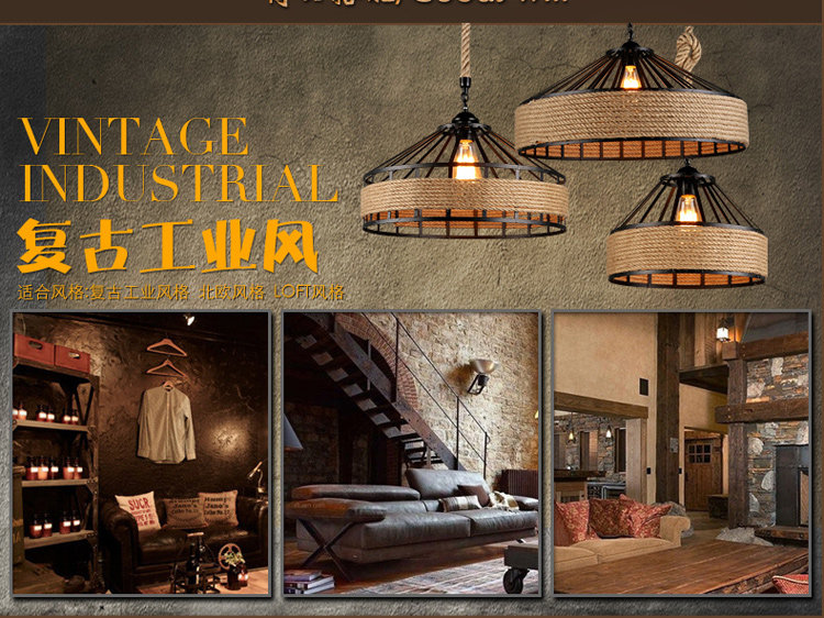 深圳市旺家灯饰有限公司发布的美式乡村麻绳吊灯工业风服装咖啡火锅店网咖酒吧餐厅创意个性吊灯图集库