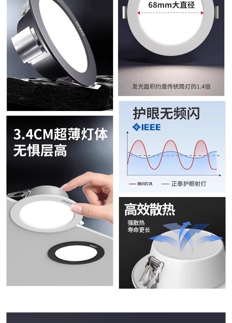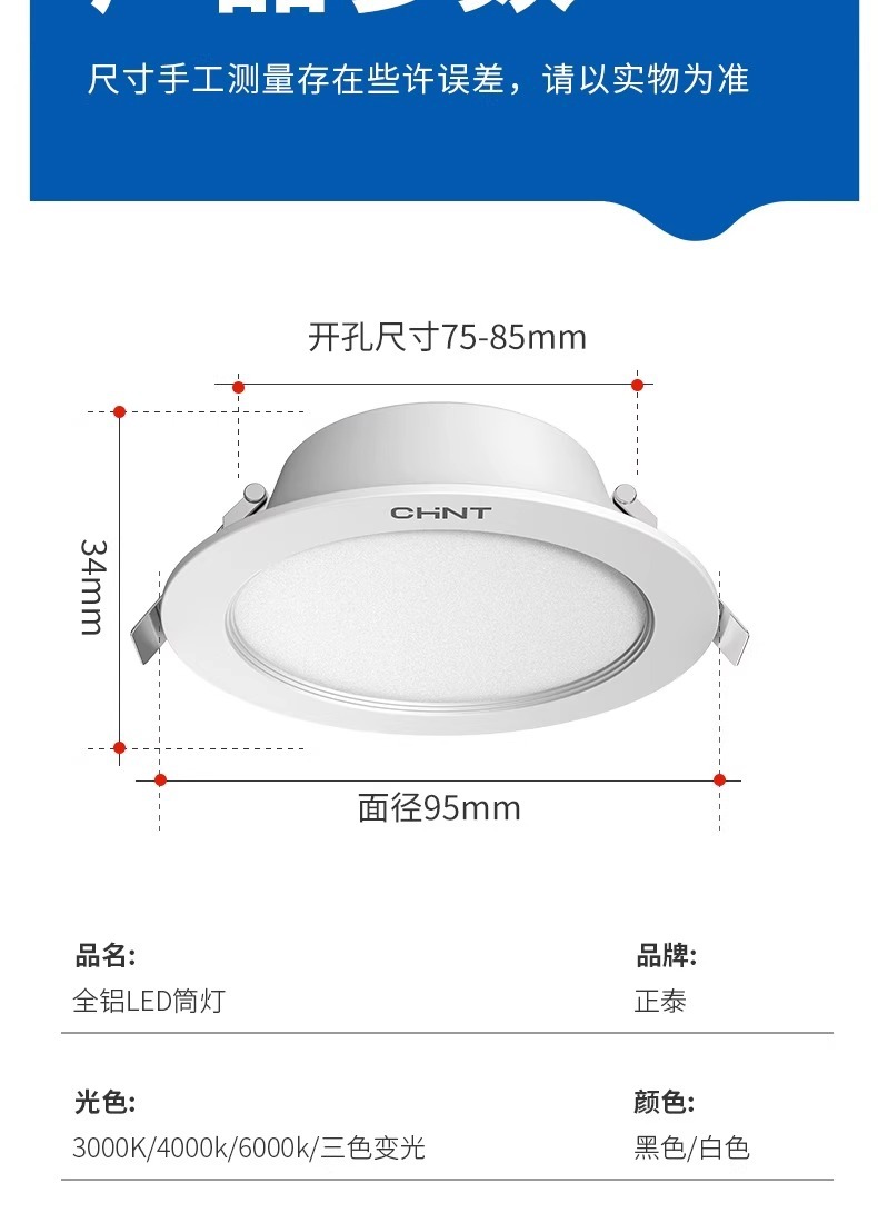 温州爱宇照明有限公司发布的正泰嵌入式天花灯吊顶灯4w超薄洞灯孔灯客厅过道射灯桶灯led筒灯图集库