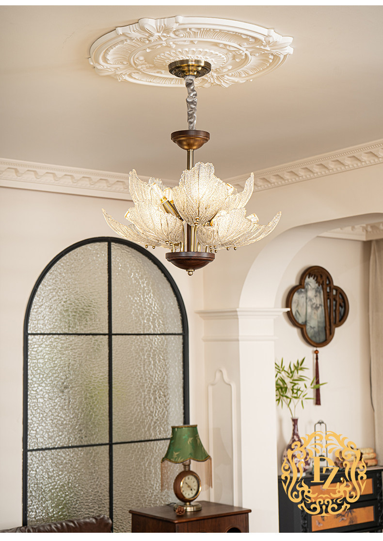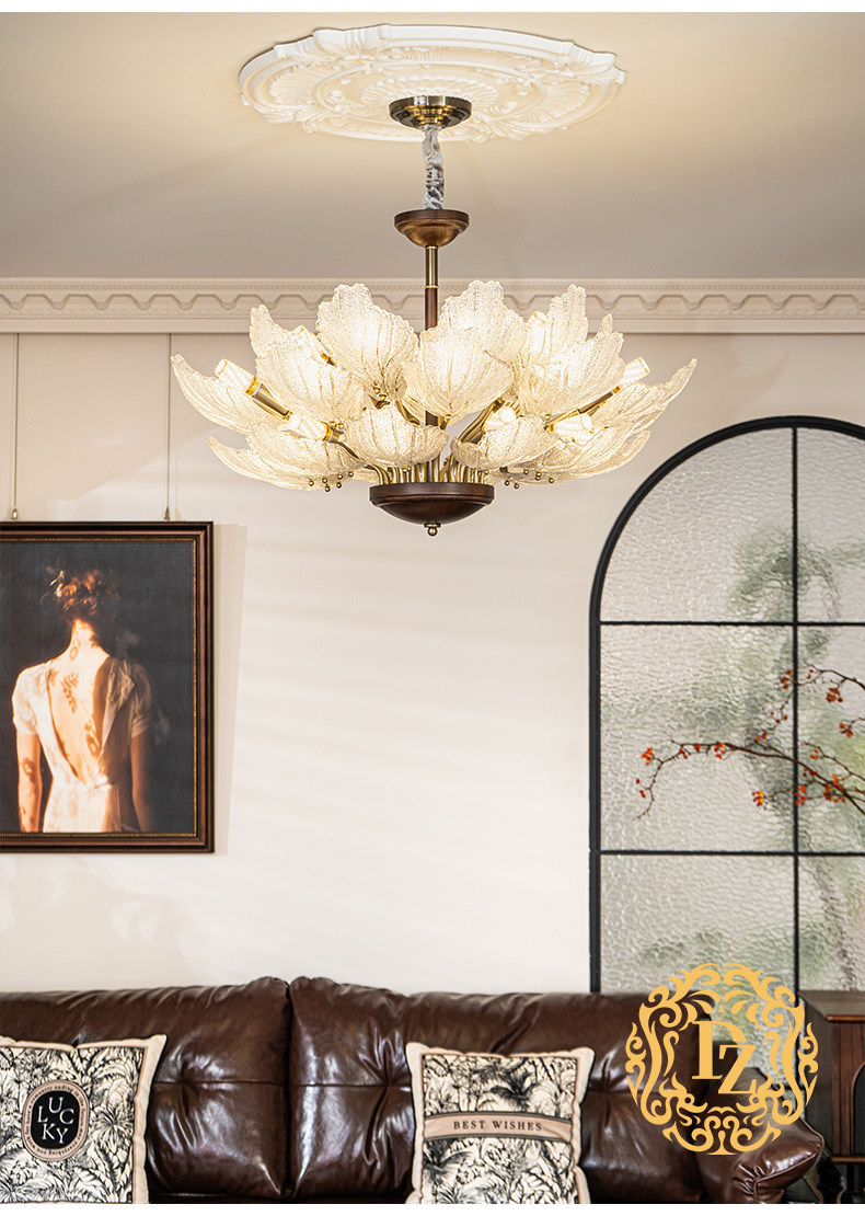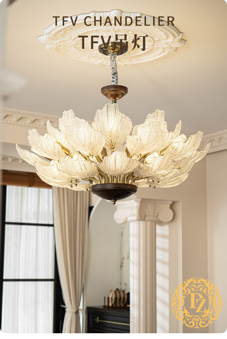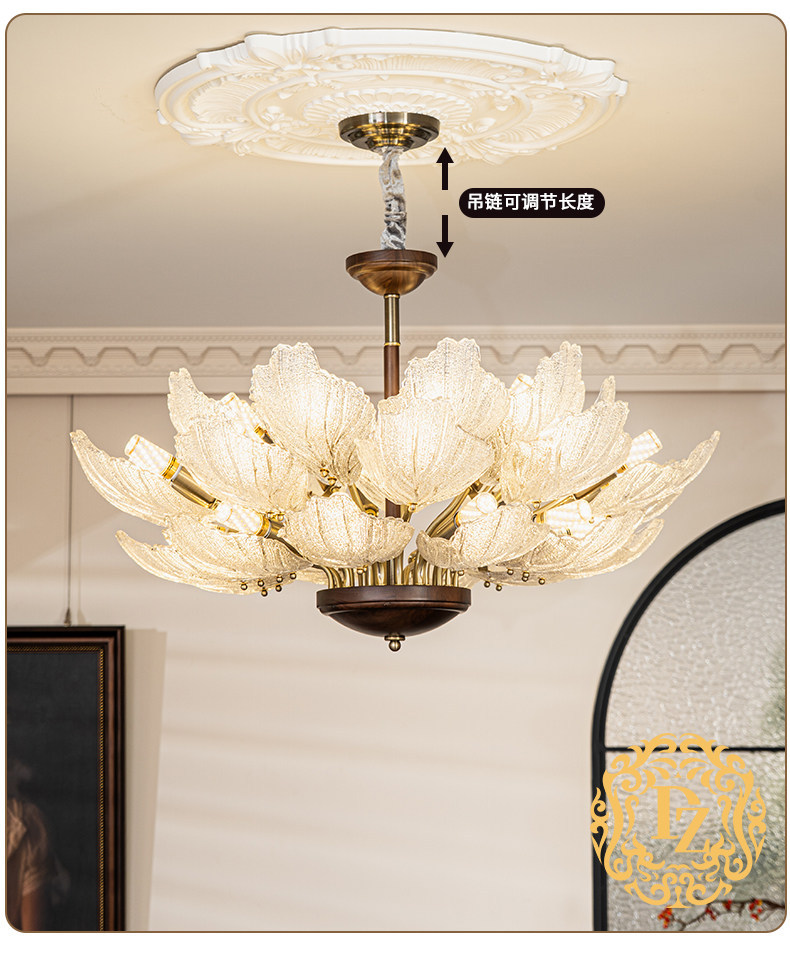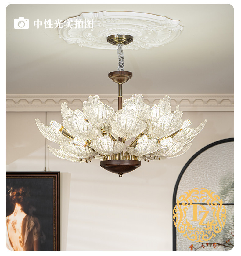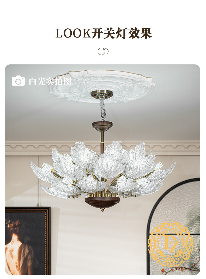 中山市浚铭灯饰有限公司发布的客厅吊灯法式复古中古轻奢主灯2025年新款大气美式胡桃木灯具图集库