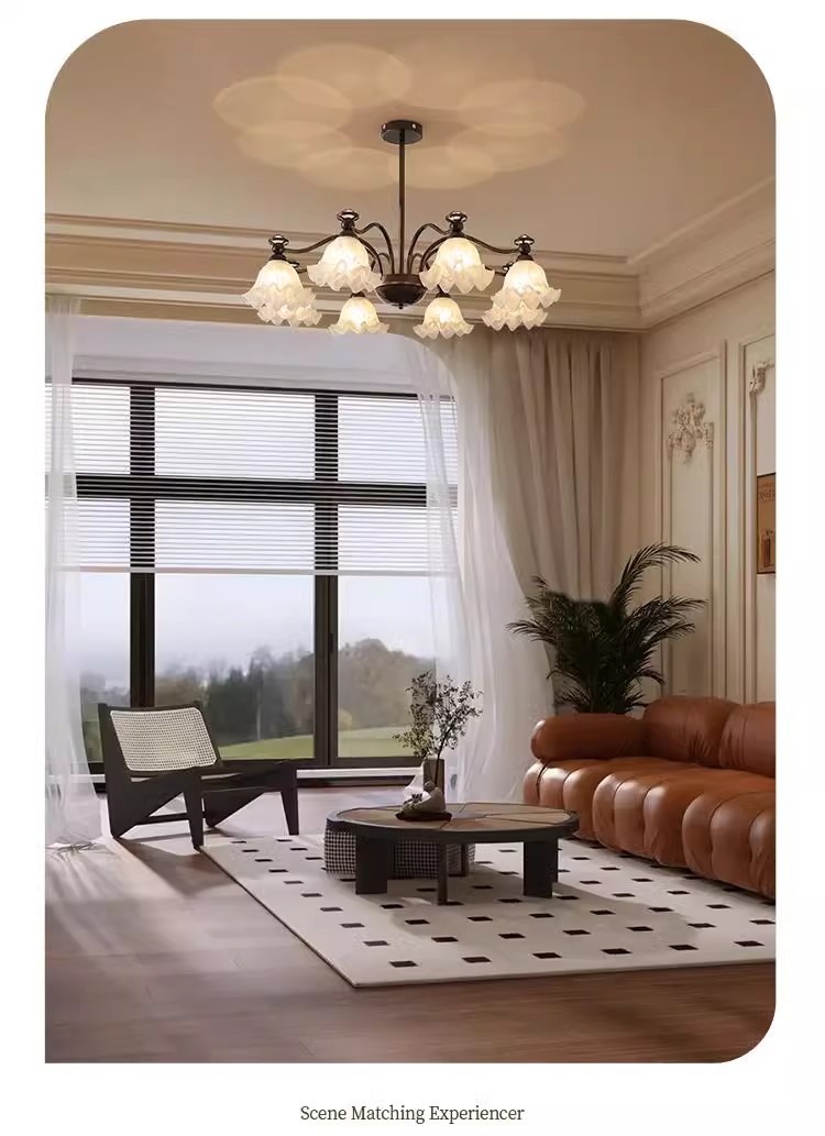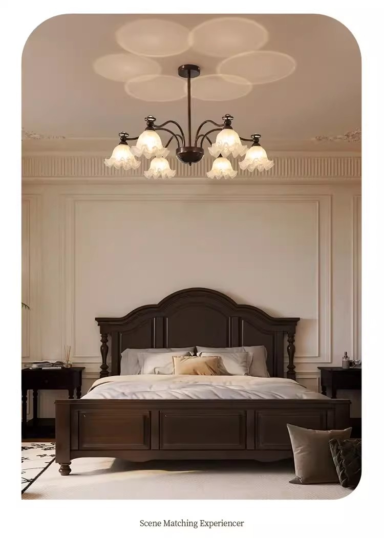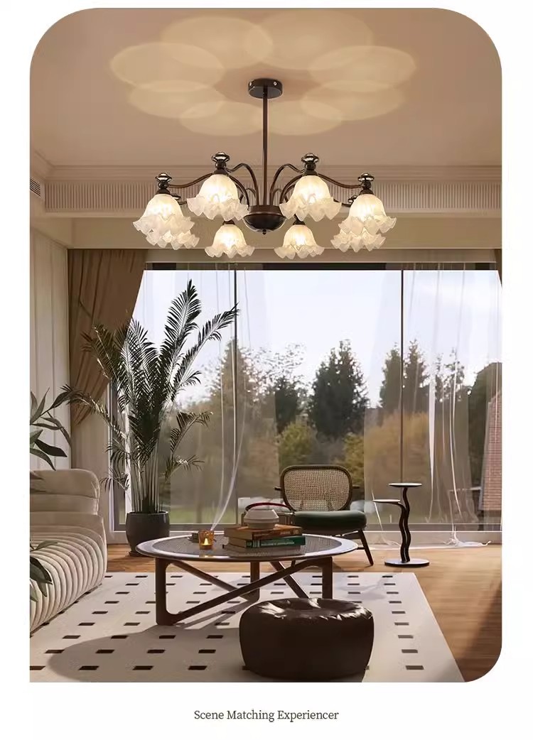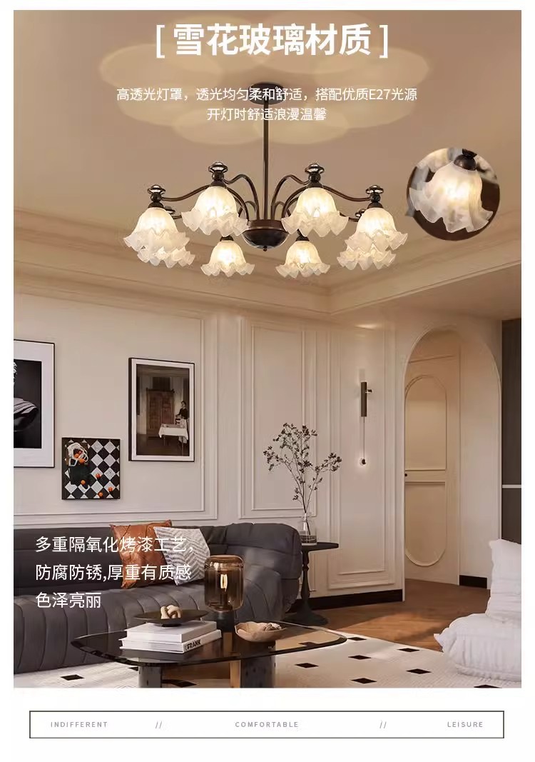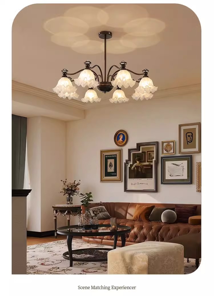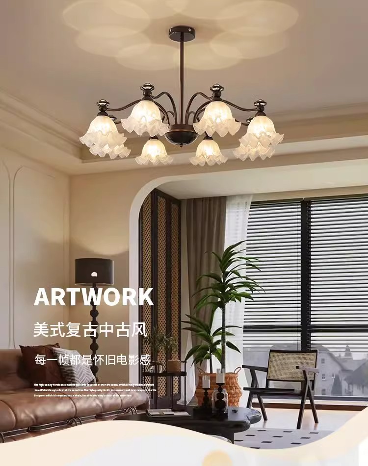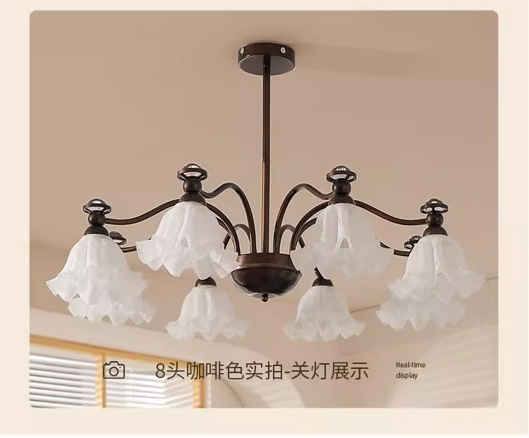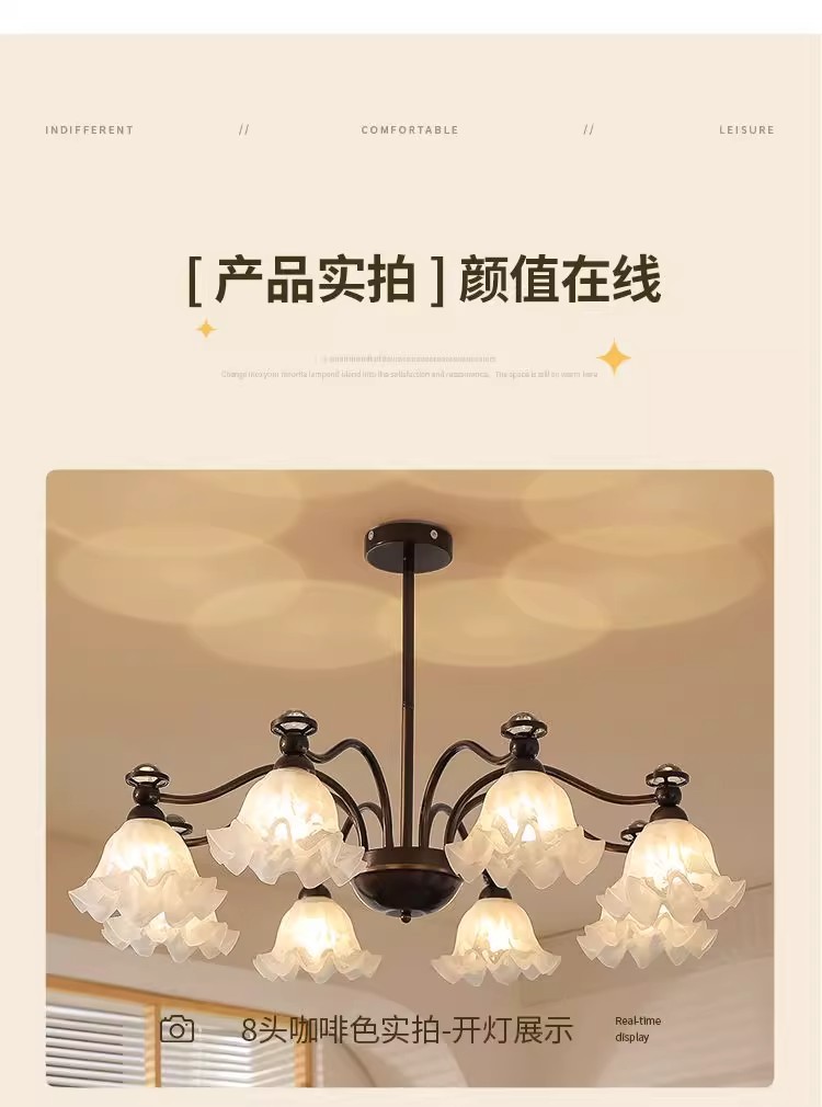 中山市豪烽灯饰有限公司发布的法式中古客厅吊灯铃兰花朵投影护眼灯具美式复古餐厅卧室大厅主灯图集库
