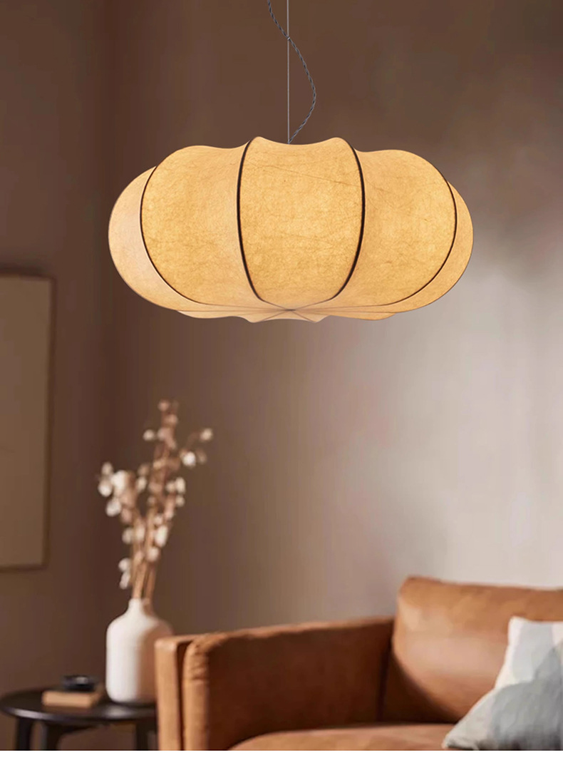 中山市冠登灯饰厂发布的日式侘寂风蚕丝吊灯复古创意客厅主灯卧室灯老南瓜设计师艺术餐厅图集库
