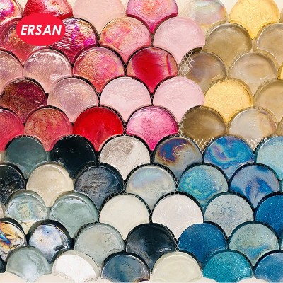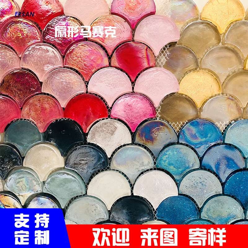 佛山贰叁建材有限公司发布的贝壳DIY扇形琉璃闪粉马赛克瓷砖背景墙 幻彩金葱金色马赛克图集库