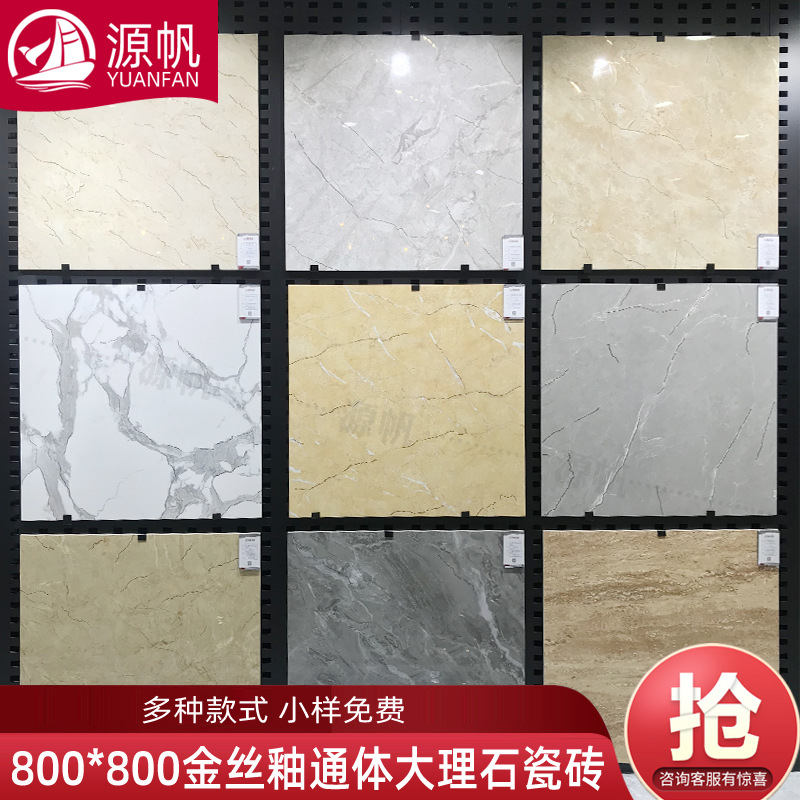 佛山市源帆陶瓷有限公司发布的源帆 广东浅色下陷釉800*800客厅商场地板砖金丝釉通体大理石瓷砖图集库