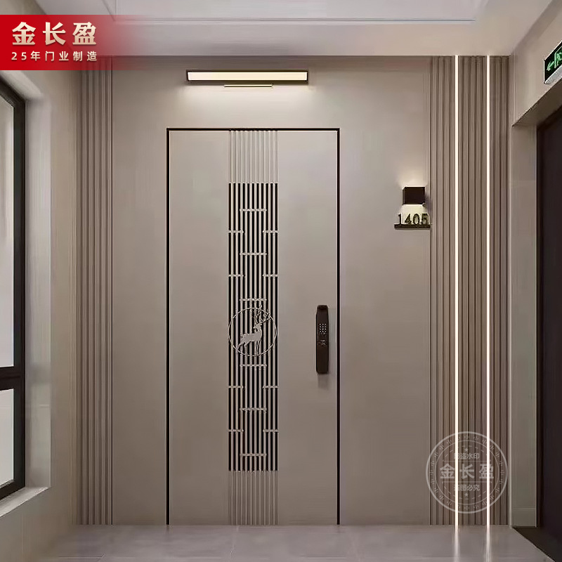 佛山市金长盈门窗有限公司发布的新中式高端防盗门家用甲级安全进户精雕铸铝防盗门一门一景入户门图集库