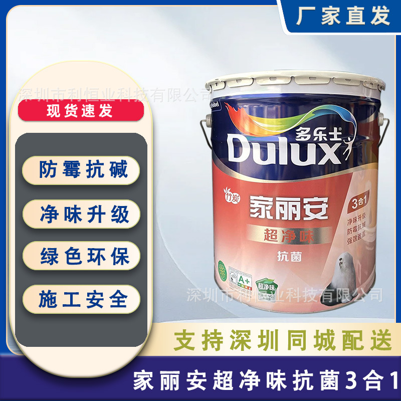 深圳市利恒业科技有限公司发布的多乐士家丽安超净味竹炭抗甲醛3合1净化甲醛抗菌防霉强效遮盖18L图集库