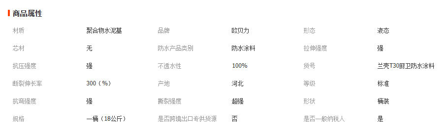 河北欧贝力新型建材有限公司发布的欧贝力T30速干厚涂型厨卫墙面地面专用双组分JS水泥基防水涂料图集库