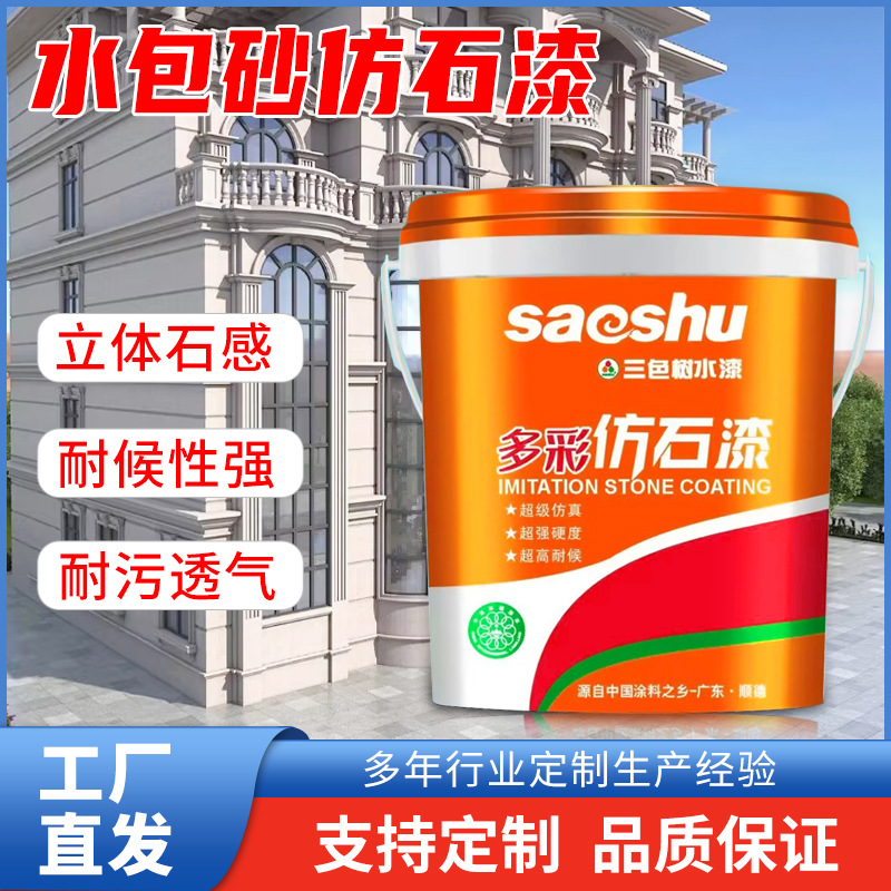 佛山市德淮建材有限公司发布的厂家批发真石漆外墙漆喷涂多彩油漆水包砂仿石漆别墅外墙石头漆图集库