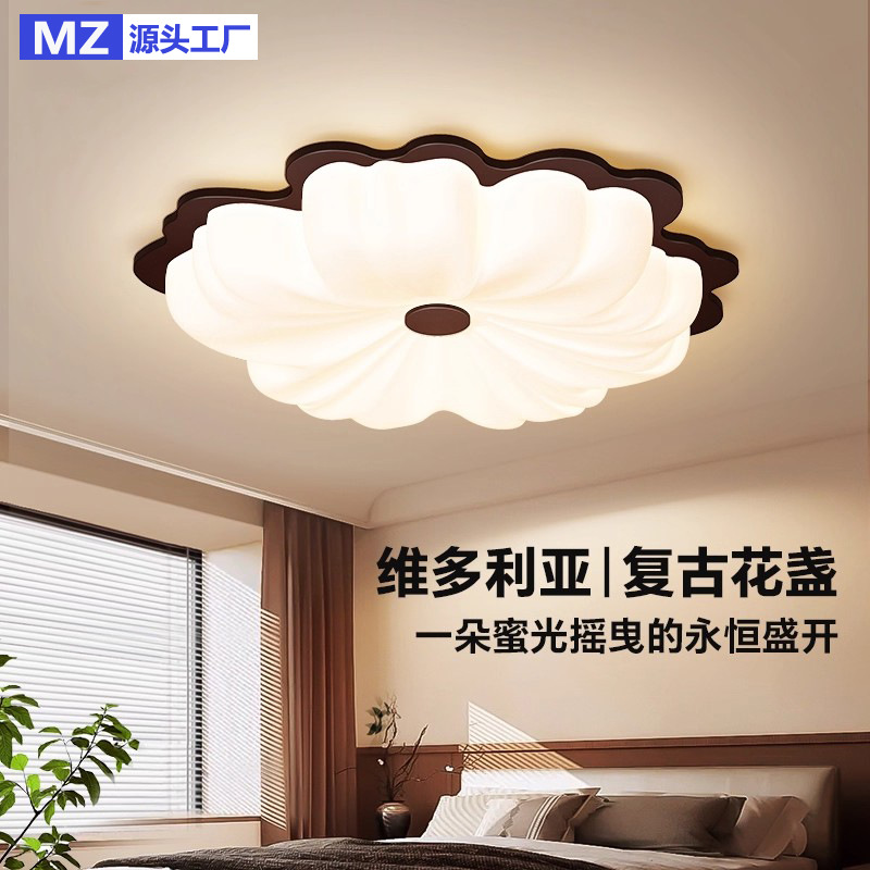 深圳市美筑照明科技有限公司发布的法式中古奶油风吸顶灯胡桃木色卧室灯男led全光谱护眼儿童房间灯图集库