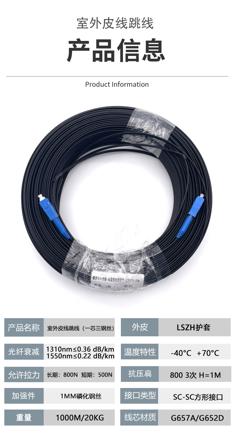 东莞市民鑫光纤通信设备有限公司发布的室外皮线跳线皮线光纤成品线室外1芯3钢丝预制SC-SC皮线图集库